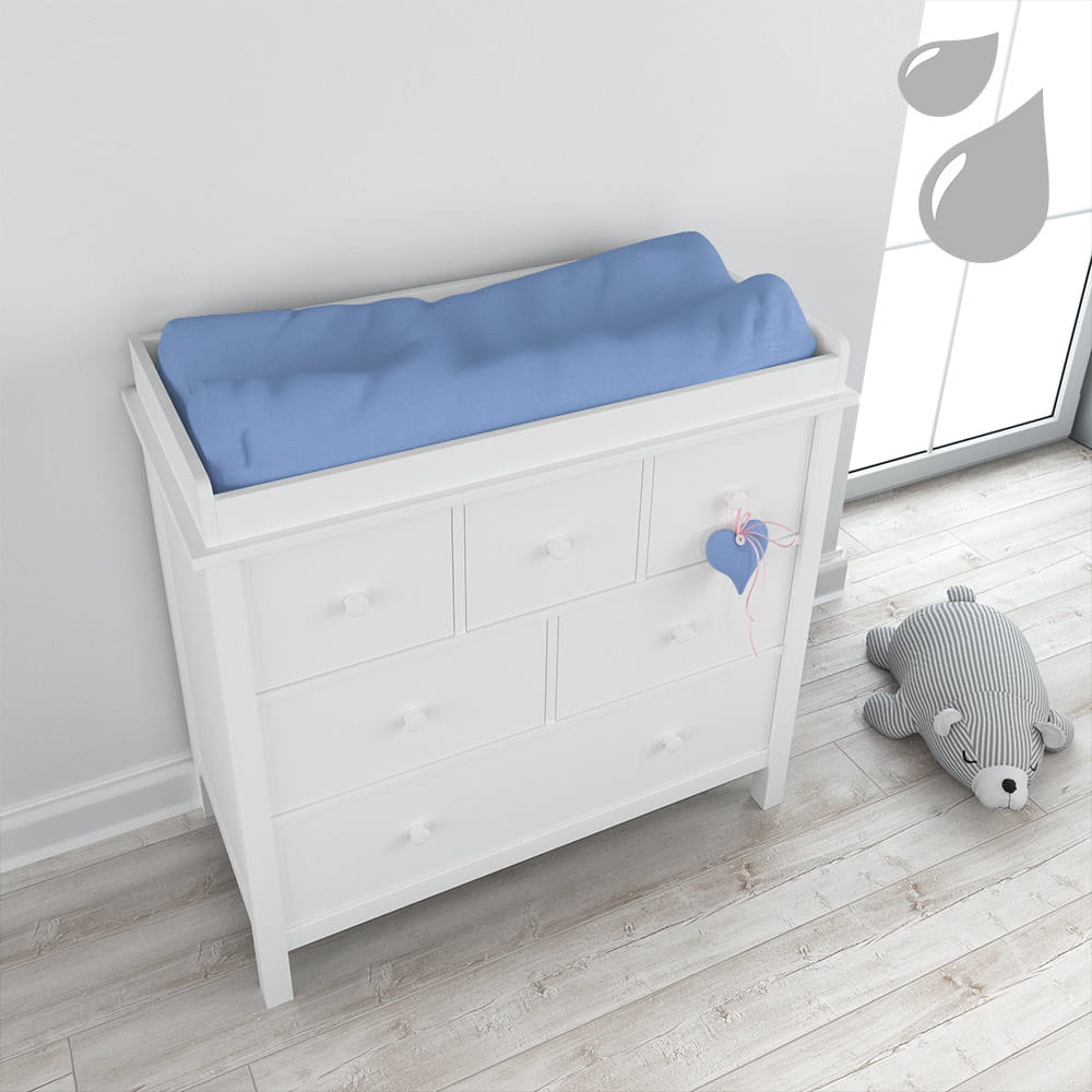 Bavlněný nepromokavý potah na přebalovací podložku 50x70 tmavě modrý je praktickým a bezpečným doplňkem každé dětské výbavy – ideální pro každodenní používání doma i na cestách.
