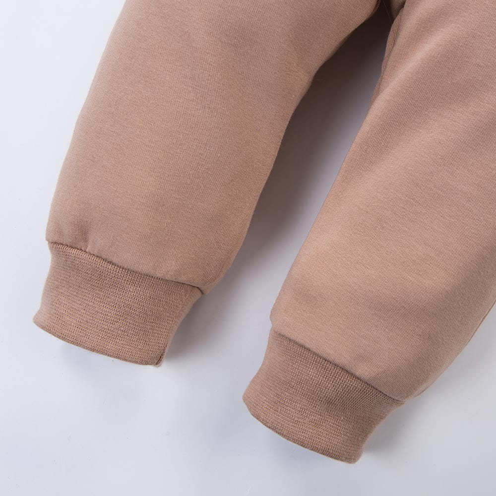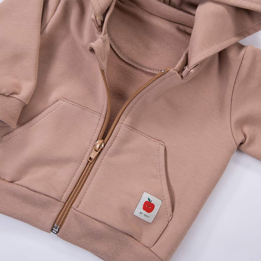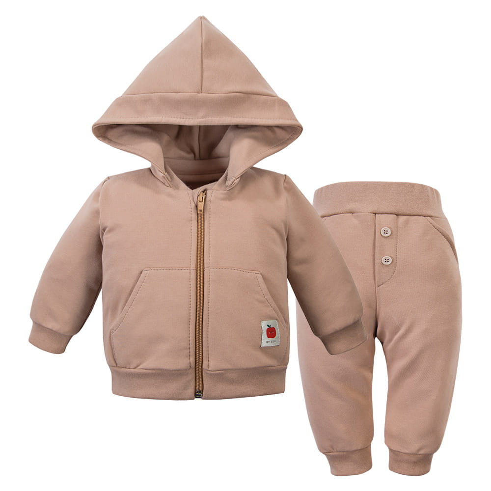 Stylová a pohodlná souprava pro chlapce vyrobená ze 100% přírodní, měkké bavlny. Souprava se skládá z mikiny s kapucí na zip a pohodlných dlouhých kalhot. Béžová barva a příjemný materiál zajišťují pohodlí a praktické nošení každý den.