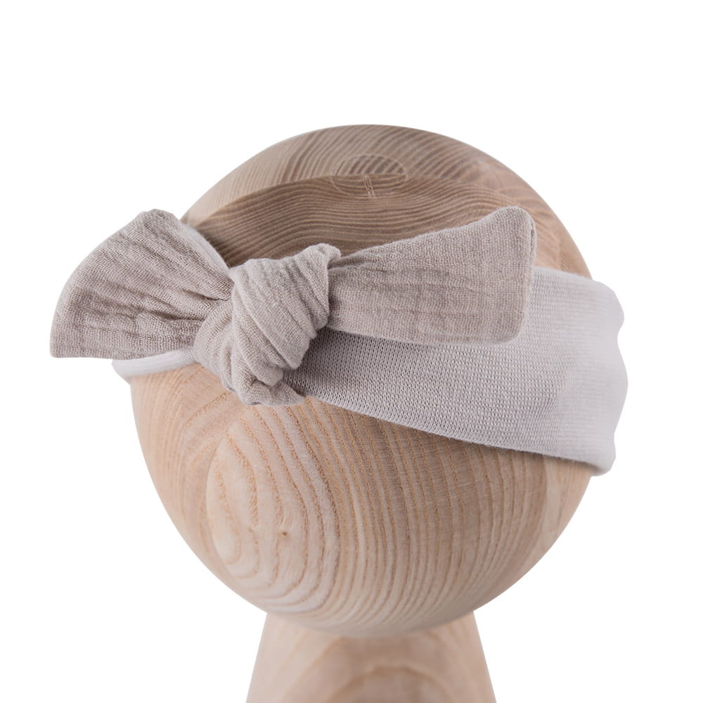 Béžová dětská čelenka s mušelínovou mašlí – kolekce Eevi Basic