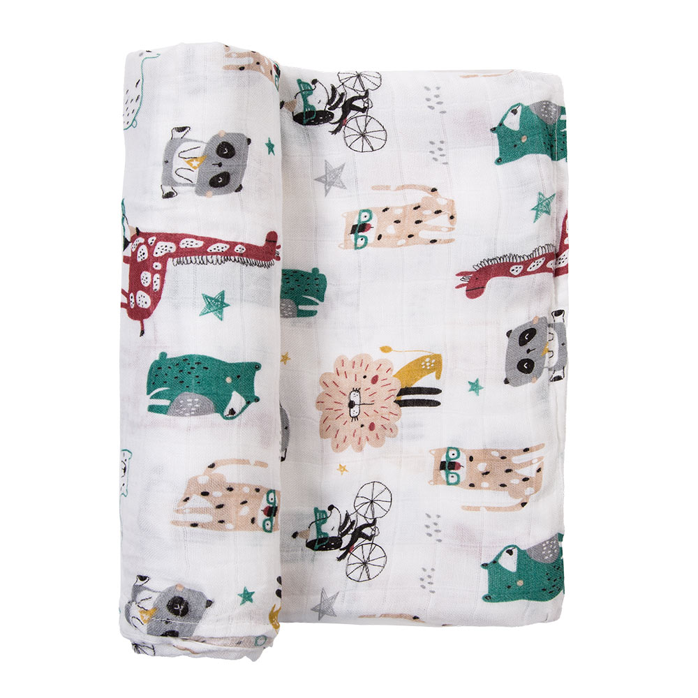 Bílá bambusová zavinovačka se zvířátky 120x120
