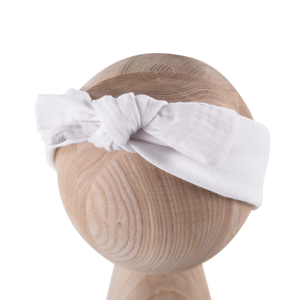 Bílá dětská čelenka s mušelínovou mašlí – kolekce Eevi Basic