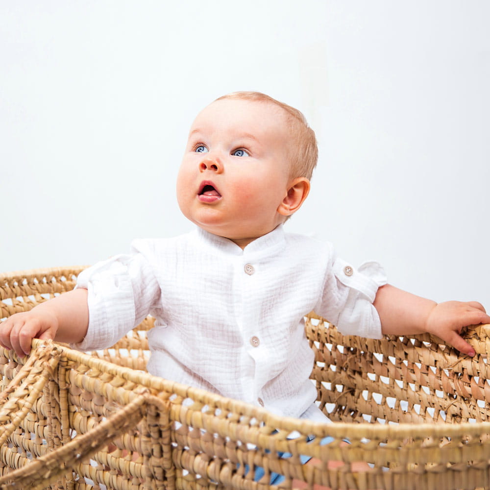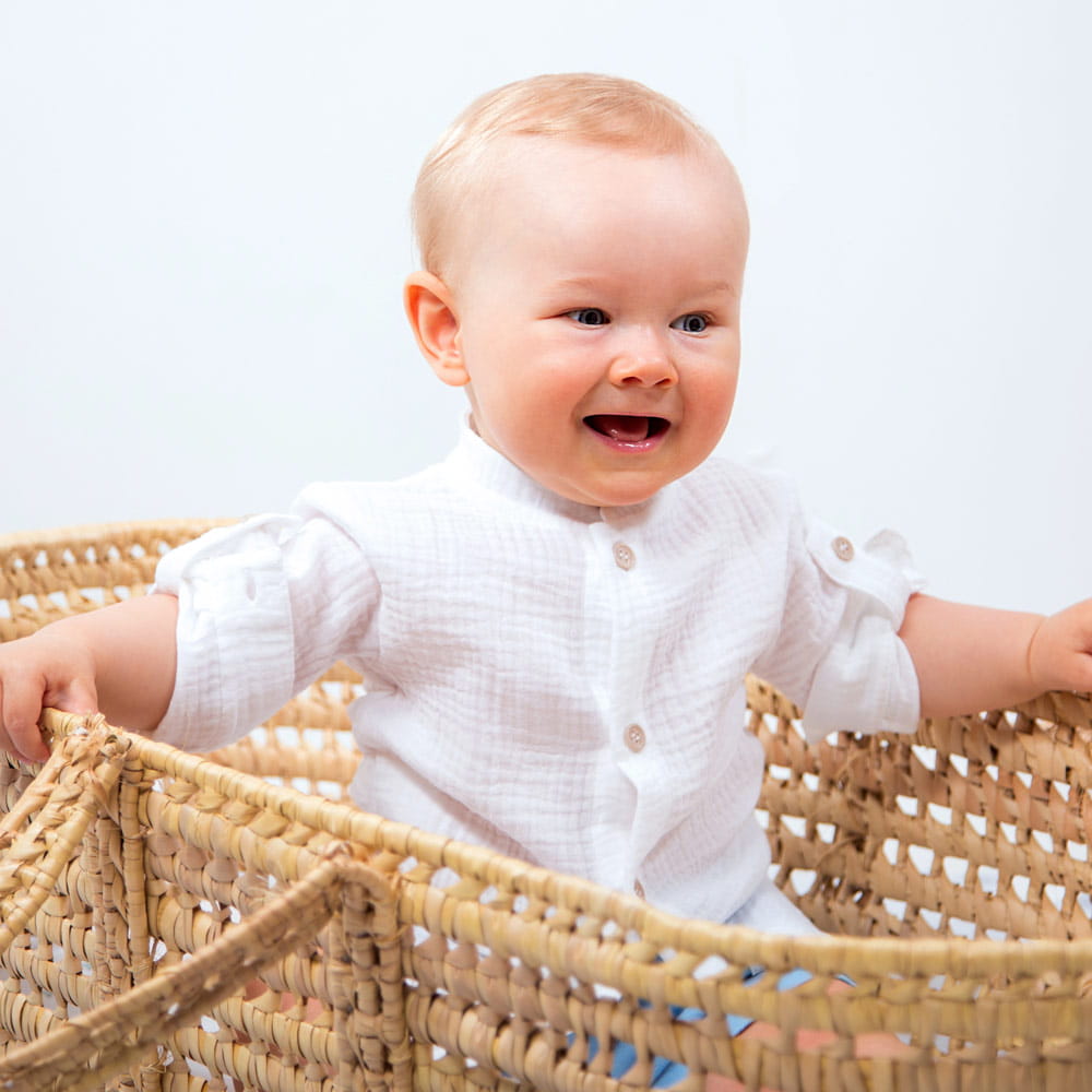 Bílá dětská mušelínová košile se stojáčkem – kolekce Ceremony