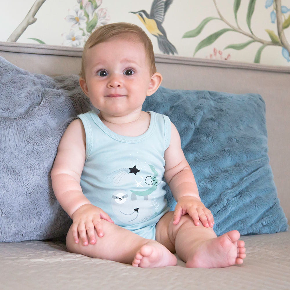 Dětské body bez rukávů s lenochodem – Kolekce Mellow