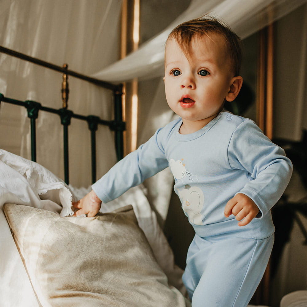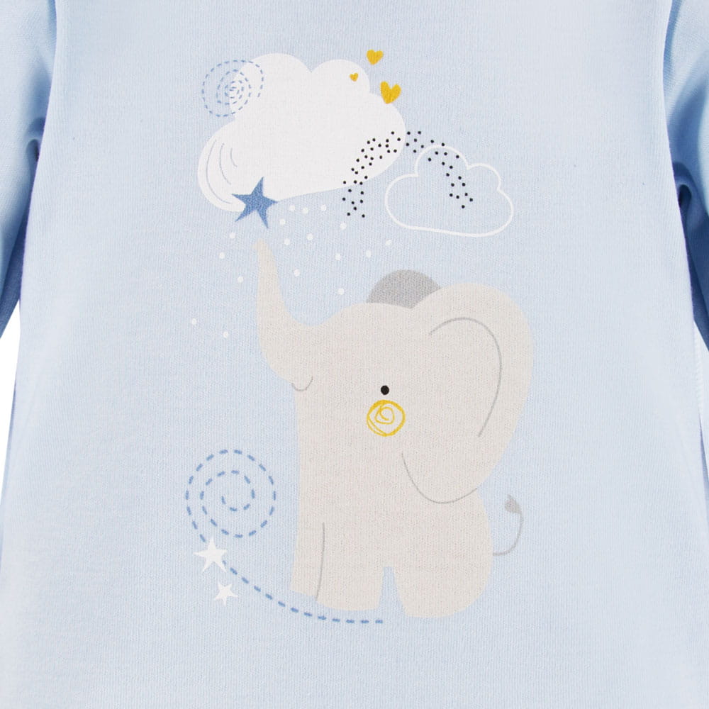 Dětské body s dlouhým rukávem z kolekce Mellow v modré barvě je vyrobeno z měkké, příjemné bavlněné pleteniny, která zajišťuje pohodlí a bezpečí pro jemnou dětskou pokožku. Na přední straně body se nachází roztomilý motiv slona, který dodává celku jemný a dětský vzhled.
