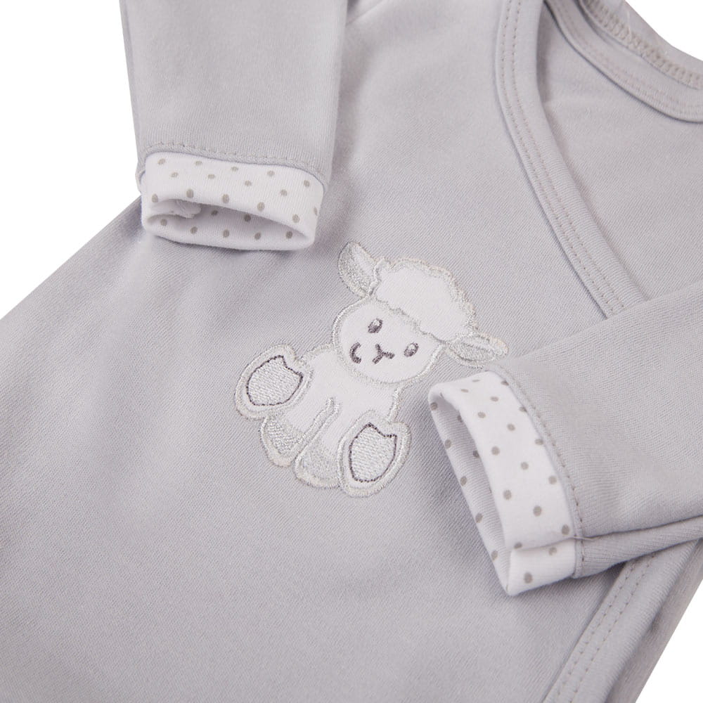 Šedé kojenecké zavinovací body s výšivkou ovečky – Kolekce Newborn