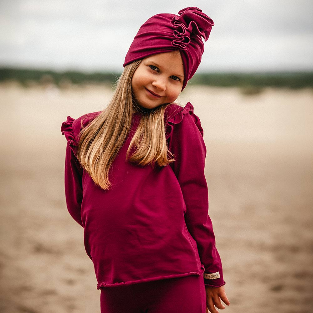 Jemná a pohodlná dětská halenka vyrobená ze 100% měkké a prodyšné bavlny. Vyznačuje se jemnými volánky na ramenou, hlubokou bordovou barvou a volným střihem pro pohodlné nošení. Ideální pro každodenní nošení – do školy, školky nebo na procházky – poskytuje volnost pohybu a pohodlí po celý den.Proč si vybrat halenky od Eevi?