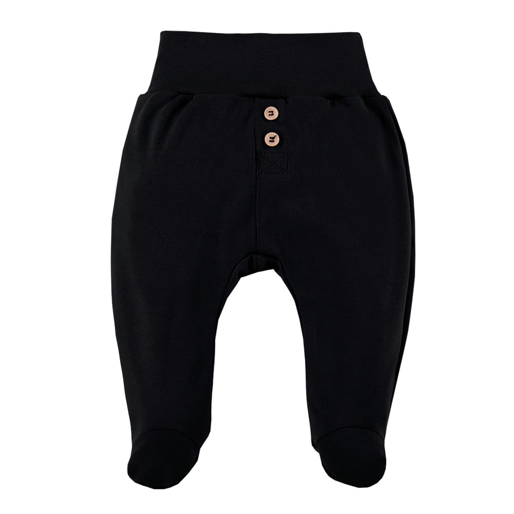 Dětské dupačky z kolekce Simply Comfy v klasické černé barvě jsou pohodlnou a praktickou volbou pro nejmenší. Na přední straně mají ozdobné knoflíčky a jsou vyrobeny z měkké, příjemné bavlněné pleteniny. V pase je vsazen neutlačující pružný lem, který netlačí dětské bříško a zajišťuje maximální komfort. Elastické zakončení nohavic zaručuje stabilní přizpůsobení a univerzální černá barva umožňuje snadné kombinování s ostatním oblečením. Ideální na každodenní nošení, procházky i hraní doma.