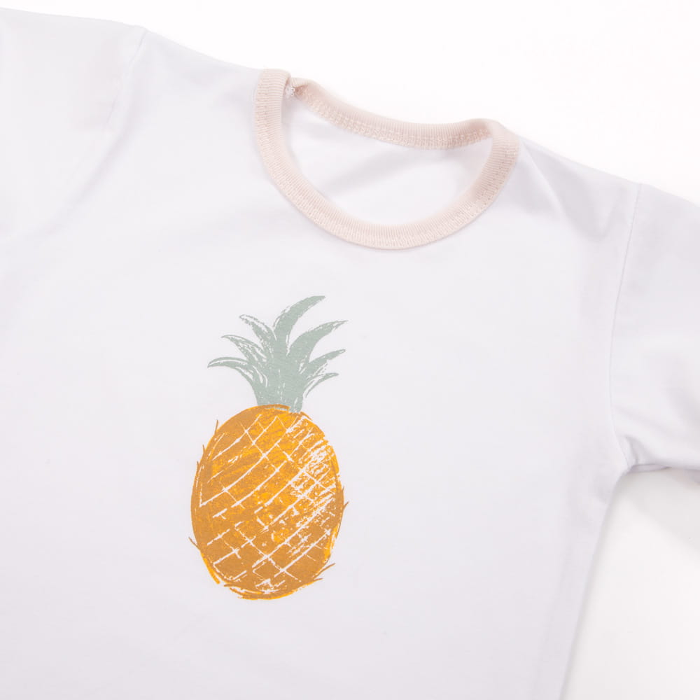 Pohodlná a roztomilá dětská pyžama s ovocným motivem jsou ideální volbou pro teplé noci. Souprava se skládá z trička s krátkým rukávem a kraťasů, což zajišťuje maximální pohodlí během spánku. Jemný materiál a veselé ovocné potisky si děti zamilují!