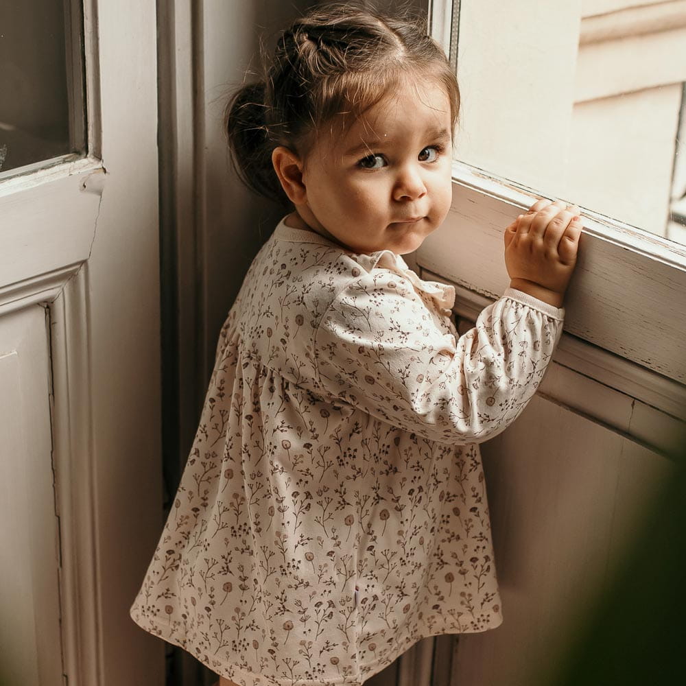 Dětská tunika krémová v květinách