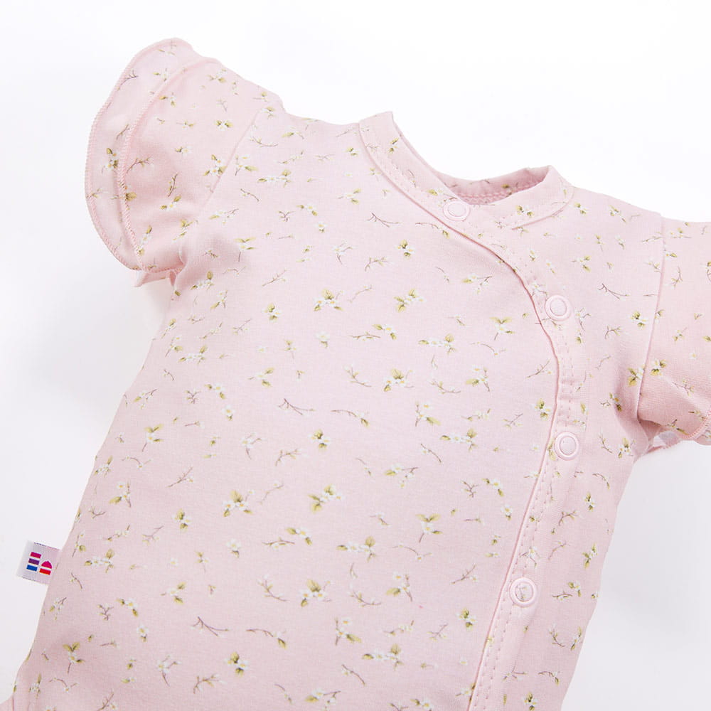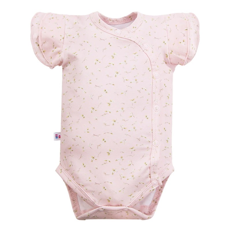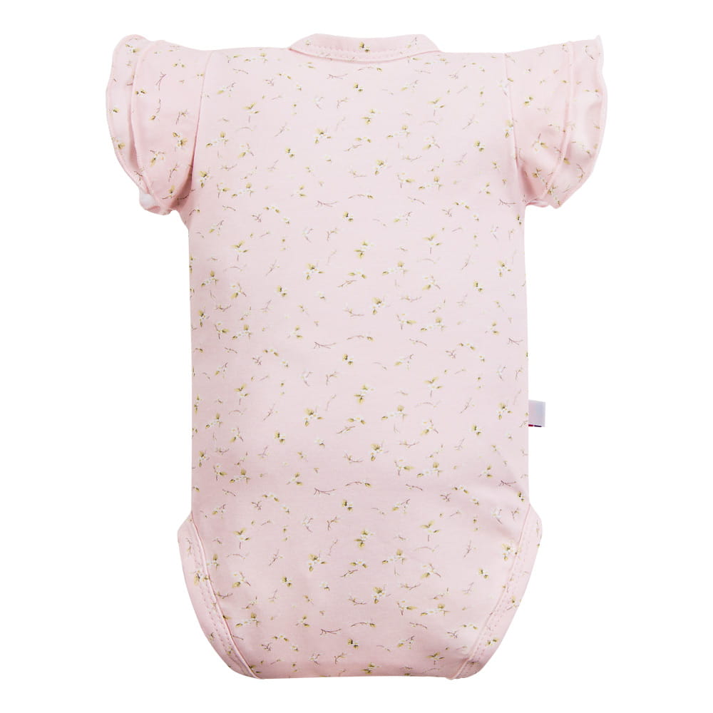 Dětské body s krátkým rukávem, psaníčko, růžové, s květinami
