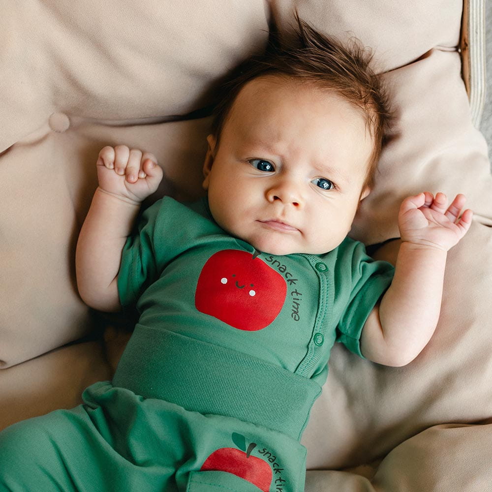 Dětské body s krátkým rukávem zelené s jablíčkem – kolekce Snack Time