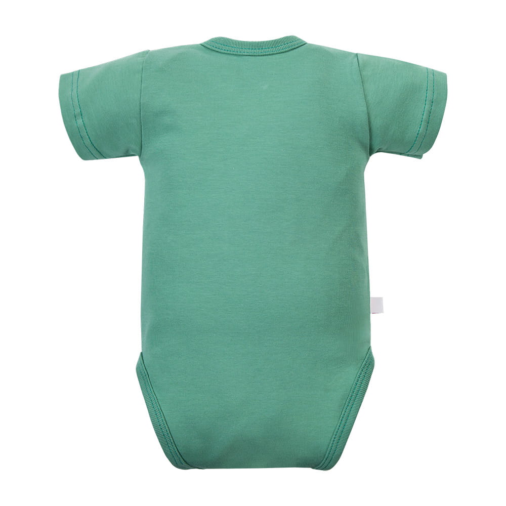 Měkké a pohodlné body pro miminka vyrobené z materiálu obsahujícího 95 % bavlny a 5 % elastanu. Body je zelené s krátkými rukávy a na středu má roztomilý potisk usmívajícího se jablíčka. Praktické zapínání na celé délce usnadňuje oblékání a přebalování dítěte.
