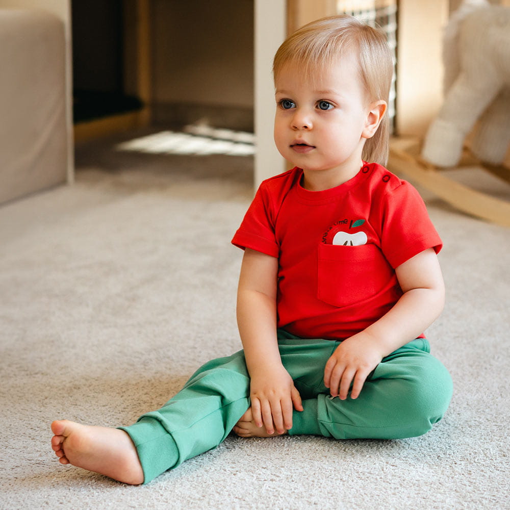 Dětské kalhoty zelené s jablíčkem – kolekce Snack Time