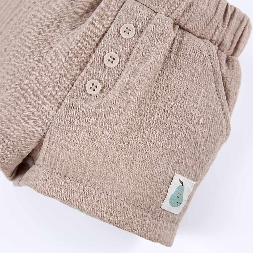Dětské kraťasy z mušelínu, béžové s knoflíčky