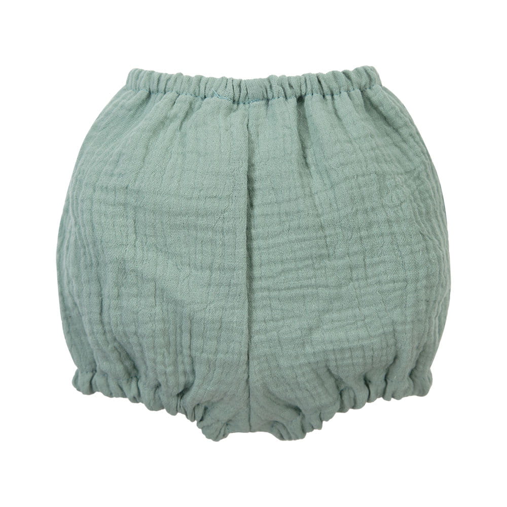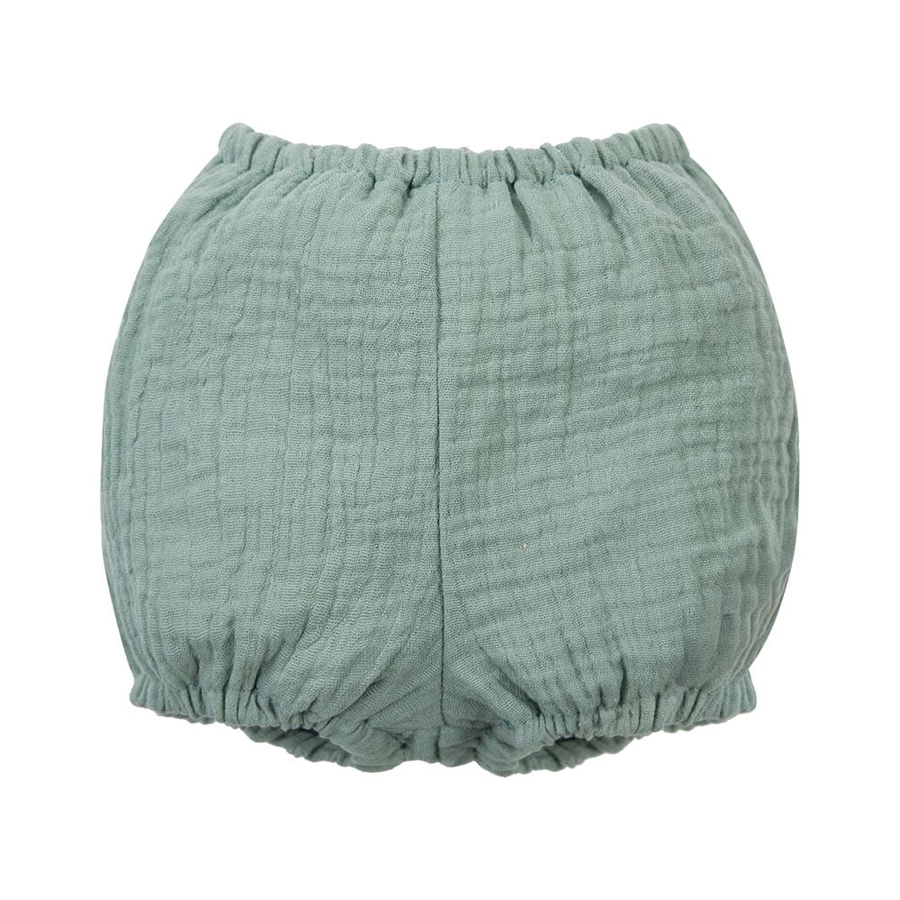 Lehké a prodyšné bloomers pro miminka vyrobené ze 100% přírodní mušelínové bavlny. Jemná zelená barva a měkký, vzdušný materiál z nich činí ideální volbu pro teplejší dny. Elastický pas a pohodlný střih zajišťují volnost pohybu a komfort při každodenních aktivitách miminka.