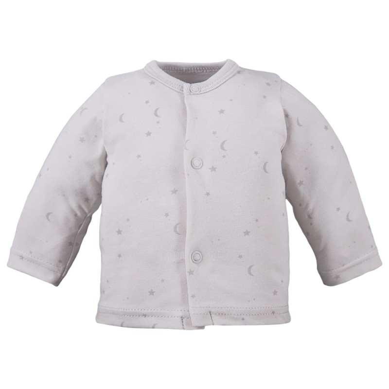 Dětské kabátky se vzorem hvězdiček v šedé barvě z kolekce Petite jsou ideální volbou pro první měsíce života dítěte. Kabátky jsou základním prvkem dětského šatníku – snadno se oblékají, jsou měkké a jemné k citlivé pokožce.