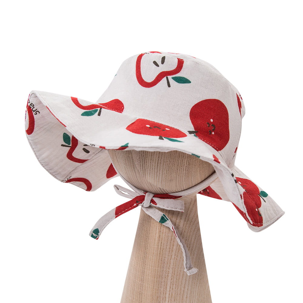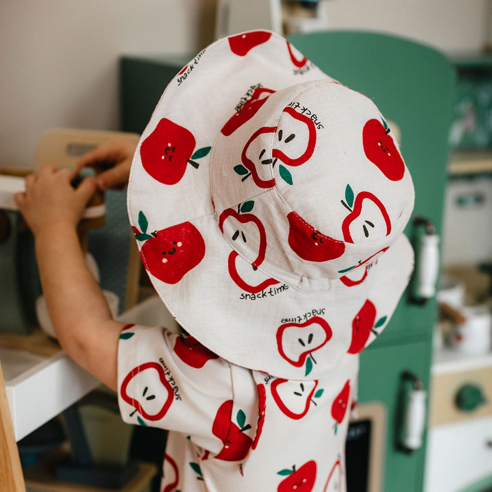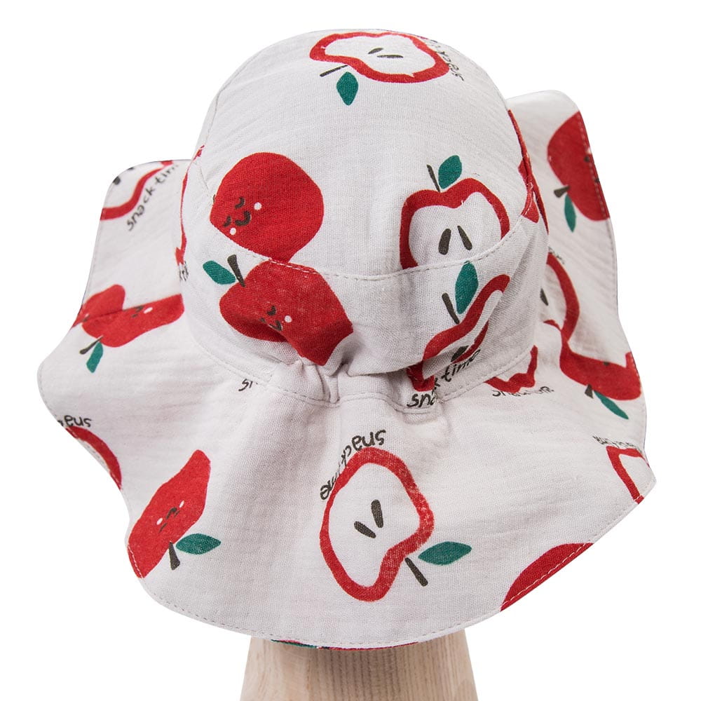Dětský mušelínový klobouk ecru s jablíčky – kolekce Snack Time