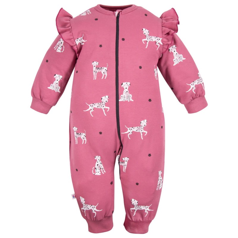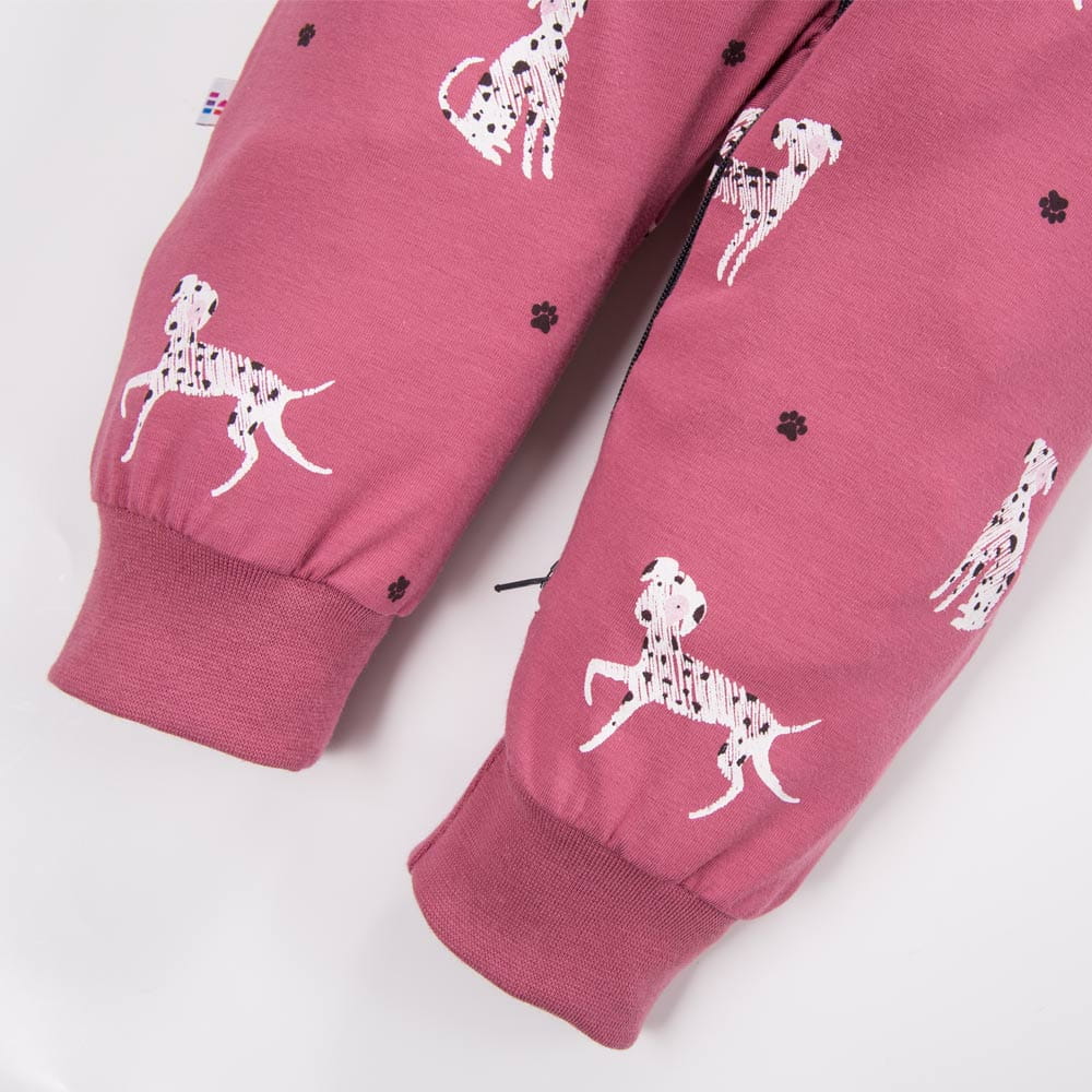 Dětský overal bez chodítek v tmavě růžovém s motivem psů