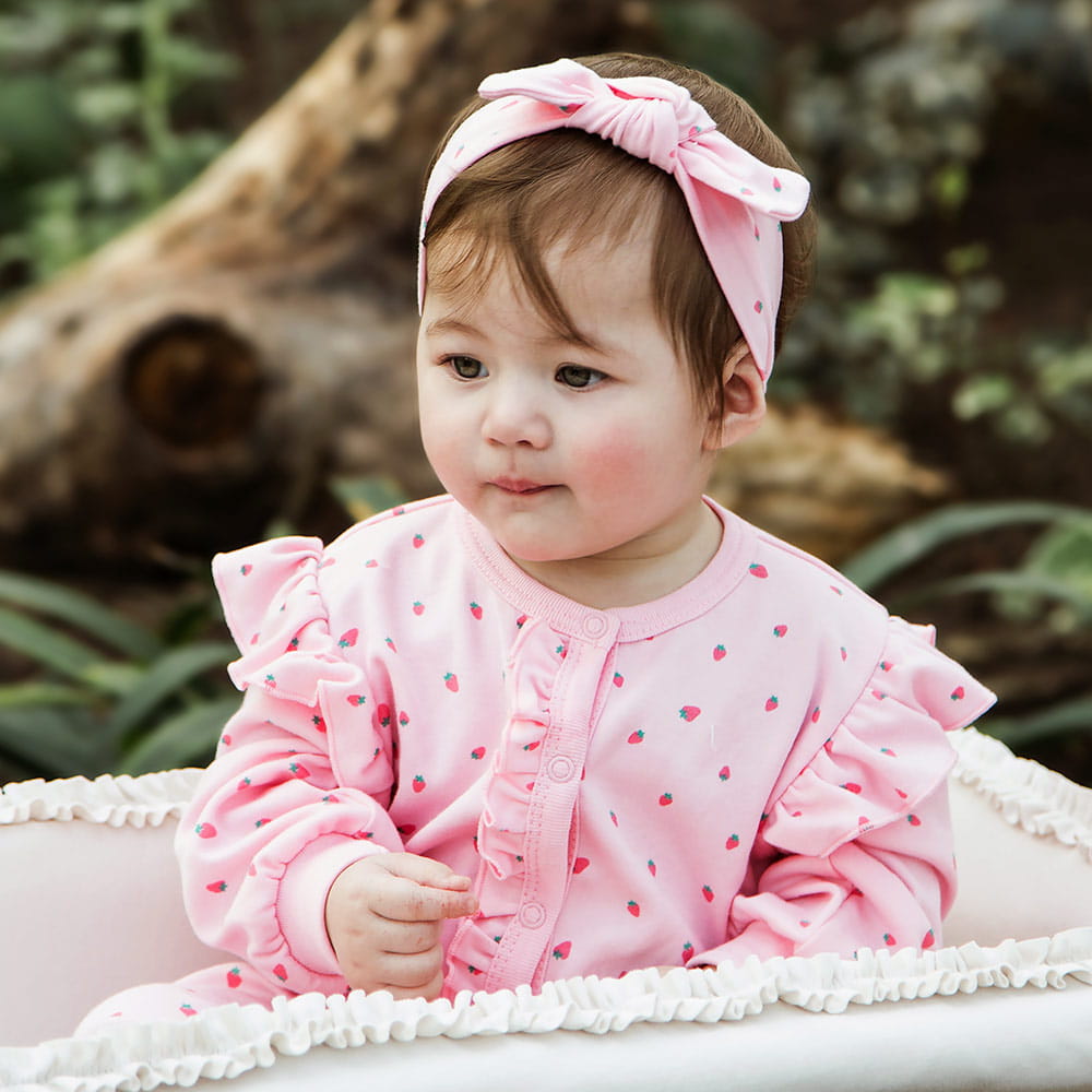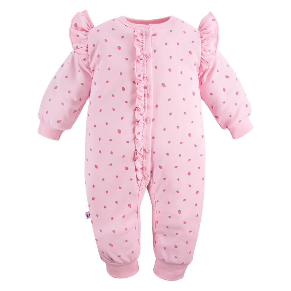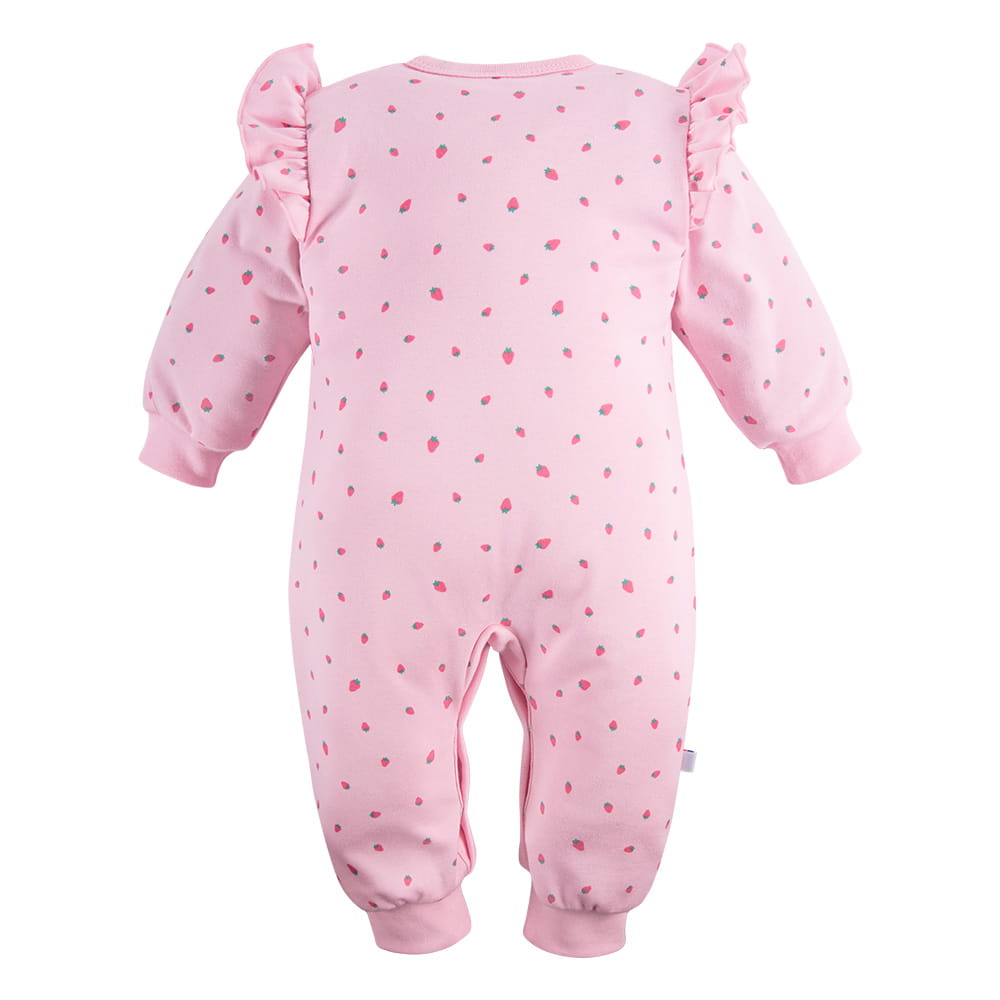 Dětský overal bez nožiček, růžový se vzorem jahod