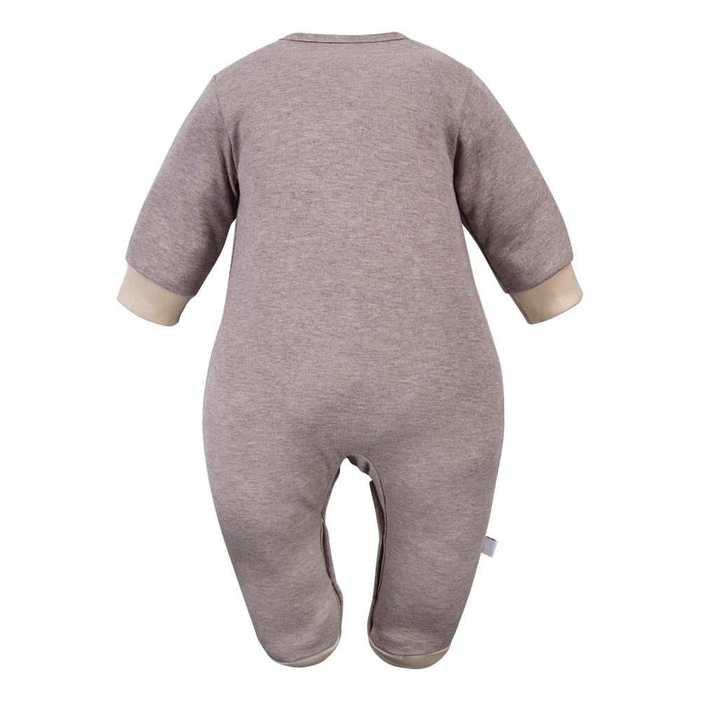 Měkký a pohodlný dětský overal v módní hnědé melírované barvě z kolekce Beary Cool. Jemná výšivka medvídka na hrudi dodává overalovi roztomilý, dětský vzhled. Ideální pro každodenní nošení, hraní doma i klidný spánek.