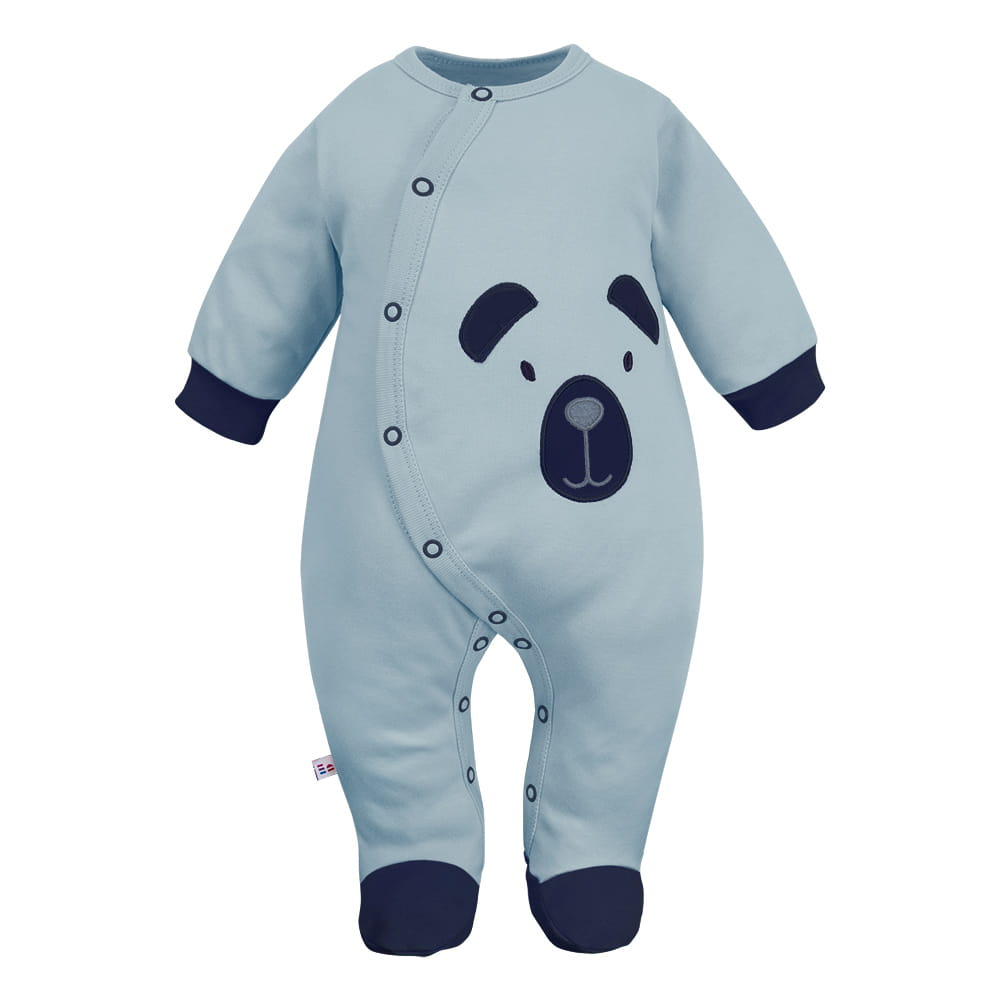 Měkký a pohodlný dětský overal v jemné modré barvě z kolekce Beary Cool. Jemná výšivka medvídka na hrudi dodává overalovi roztomilý, dětský vzhled. Ideální pro každodenní nošení, hraní doma i klidný spánek.