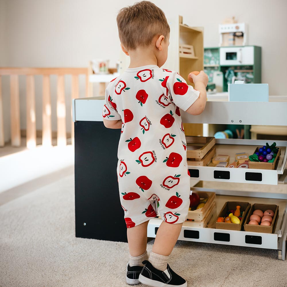 Dětský rampers ecru s jablíčky – kolekce Snack Time