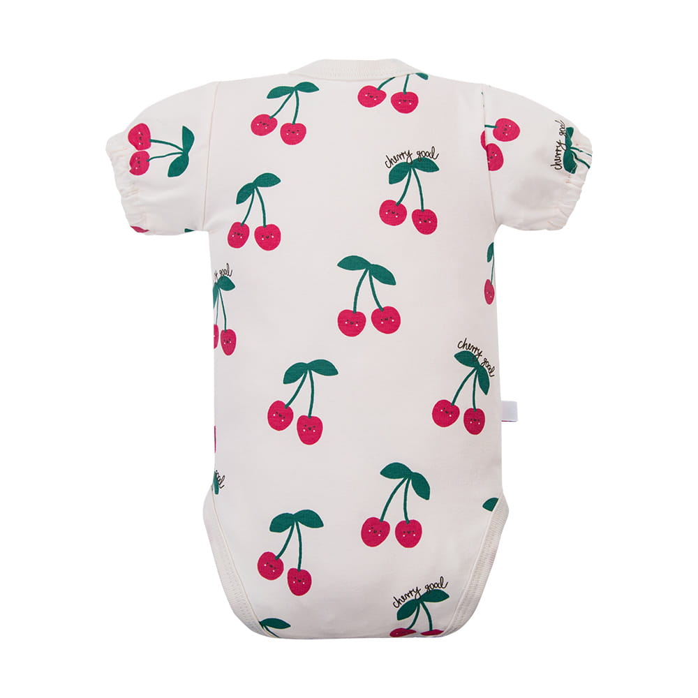Dívčí body s krátkým rukávem na cvočky ecru s třešněmi – kolekce Cherry