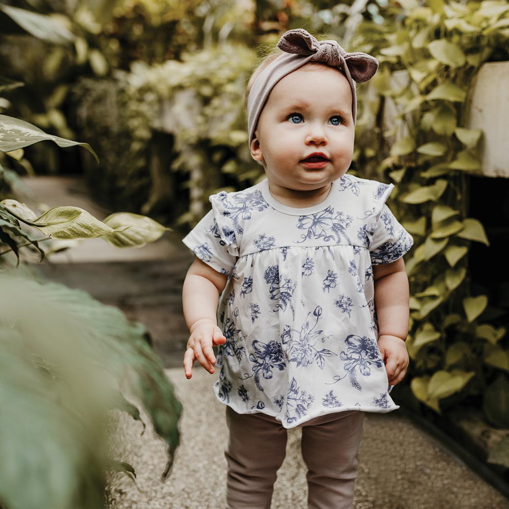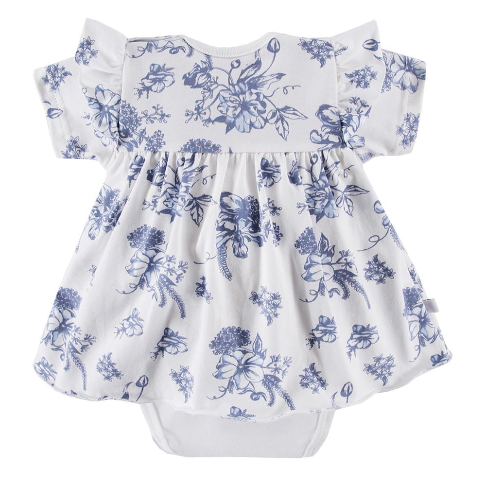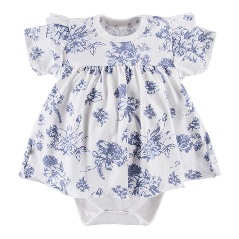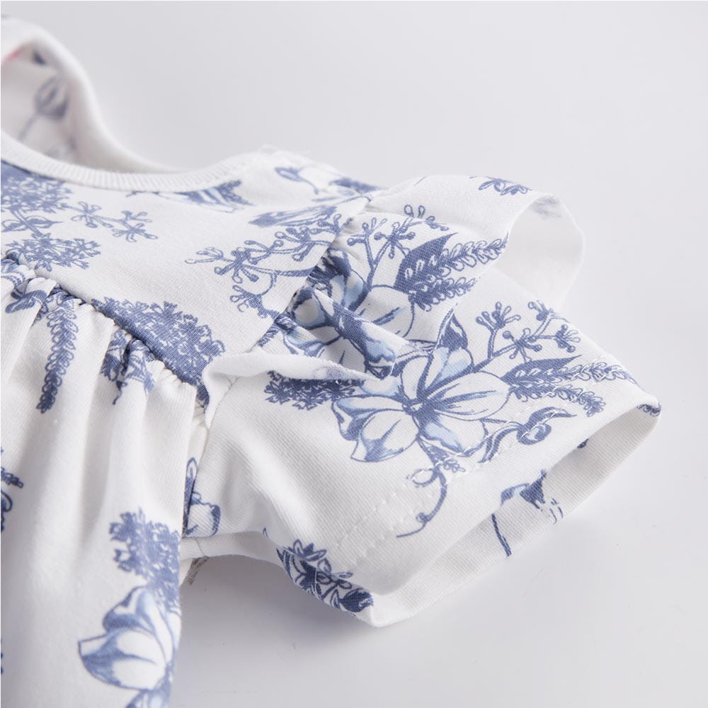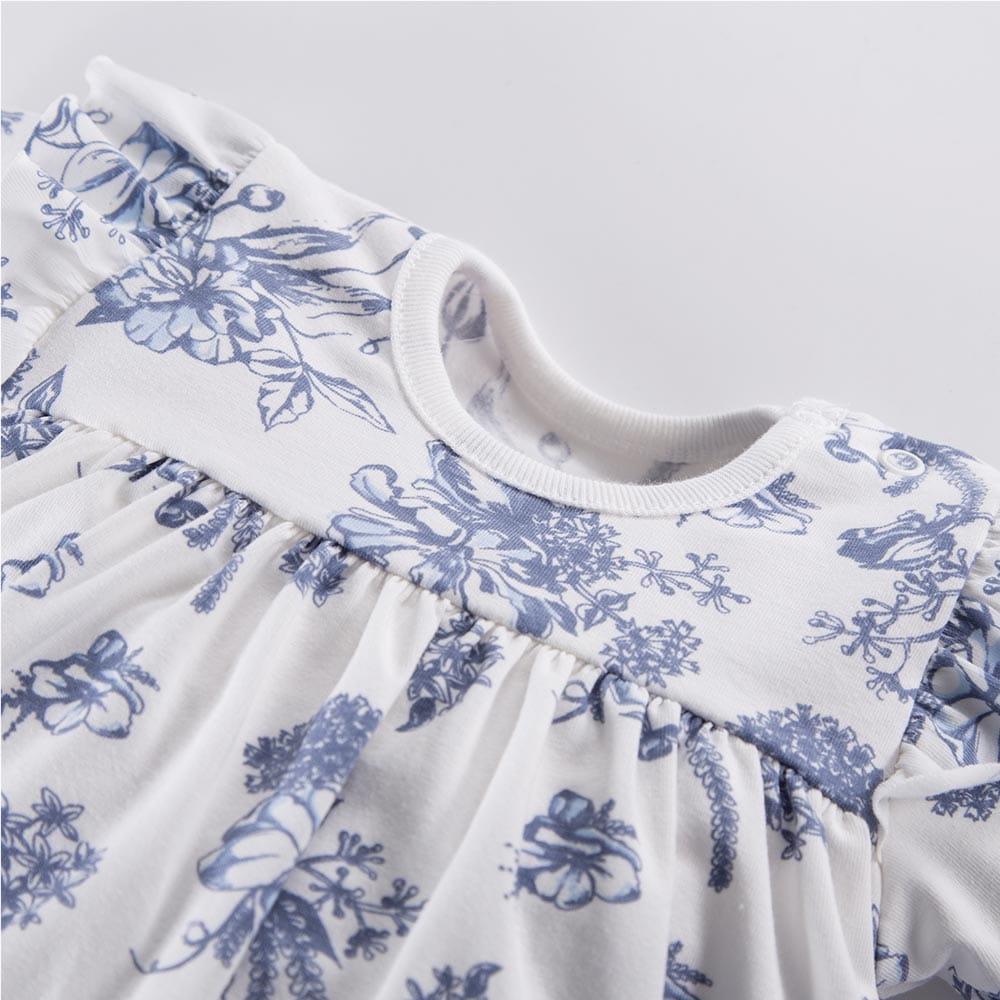 Dívčí body tunika s dlouhým rukávem bílé s modrými květinami