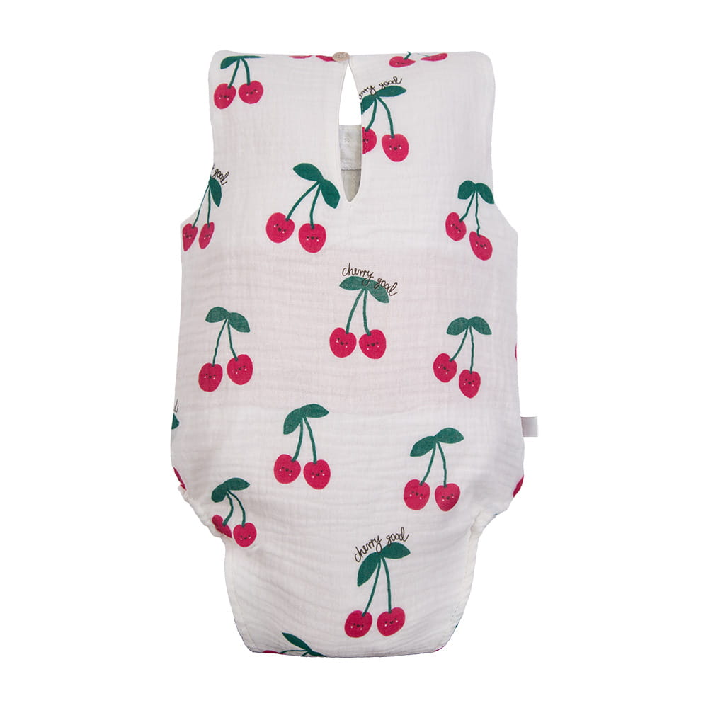 Dívčí mušelínové body ecru s třešněmi – kolekce Cherry