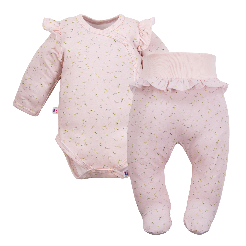 Dívčí set body s volánky a dupačky růžové – kolekce Meadow