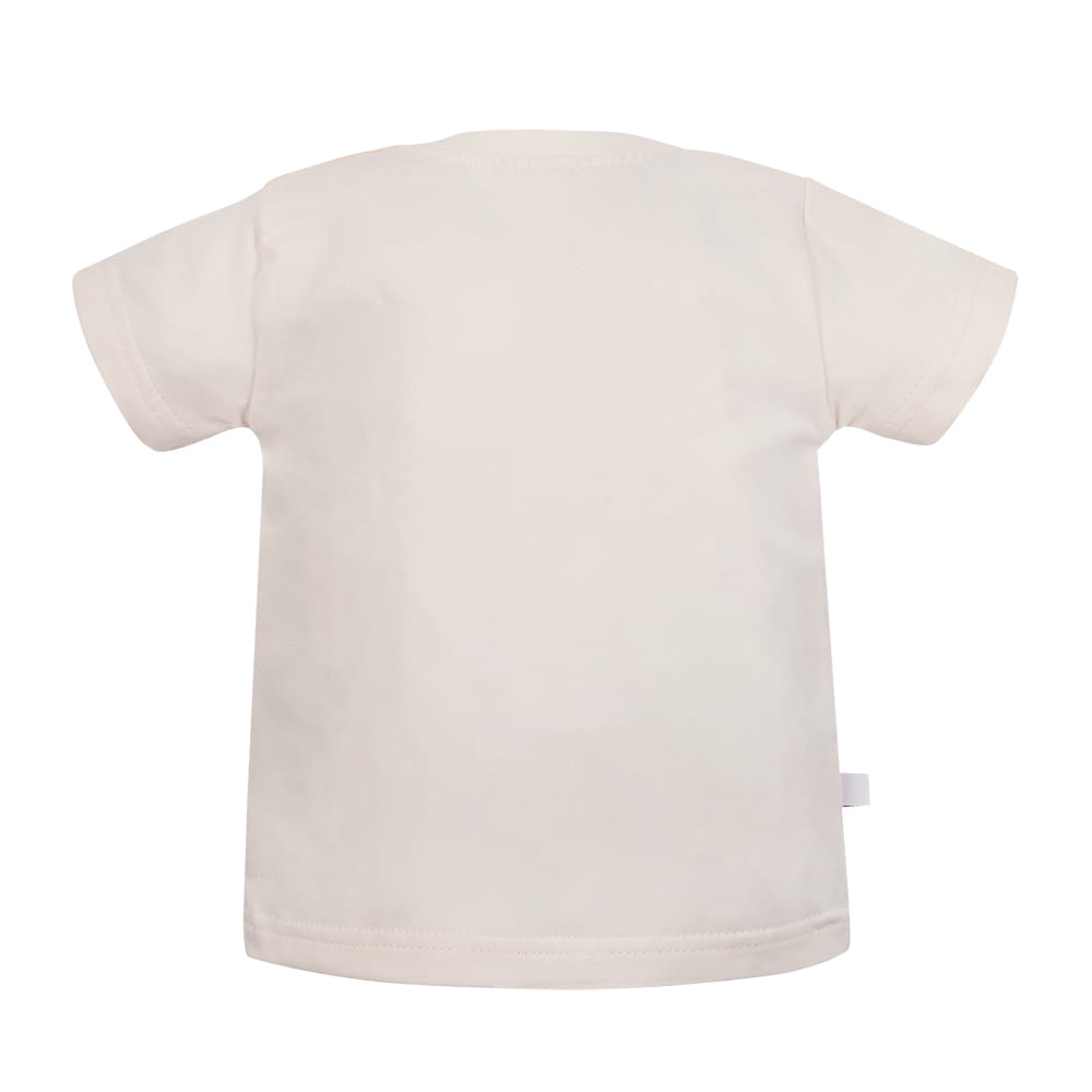 Roztomilé a pohodlné tričko pro dívky vyrobené z látky obsahující 95% bavlny a 5% elastanu. Tričko má jemnou barvu ecru a uprostřed se nachází potisk usměvavých třešní, který mu dodává veselý a dívčí vzhled. Měkký a elastický materiál zajišťuje pohodlí při každodenním nošení i při hrách.