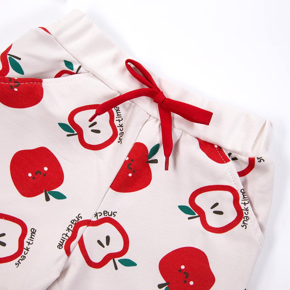 Ecru dětské kraťasy s jablíčky – kolekce Snack Time