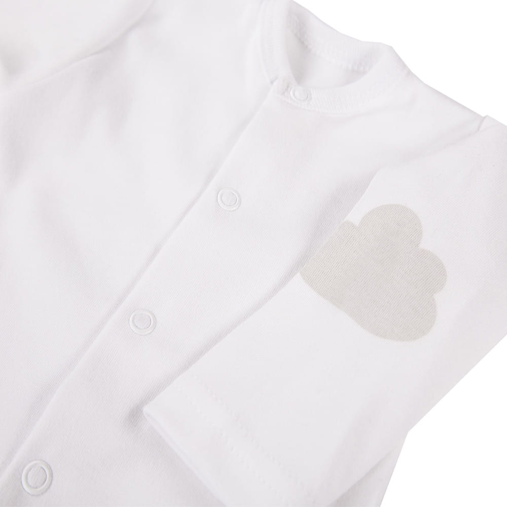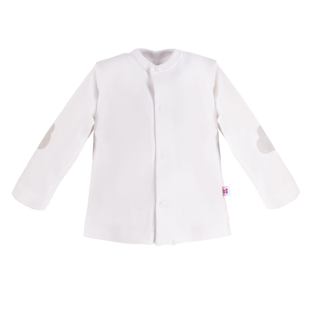 Na rukávku se nachází roztomilý motiv mráčku, který dodává kabátku jemný dětský vzhled. Praktický střih umožňuje úplné rozepnutí, díky čemuž je kabátek funkční a pohodlný při každodenním oblékání a přebalování. V kombinaci s kojeneckými dupačkami tvoří perfektní vycházkový komplet.