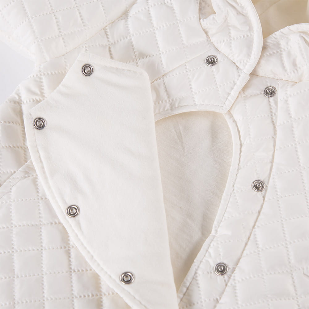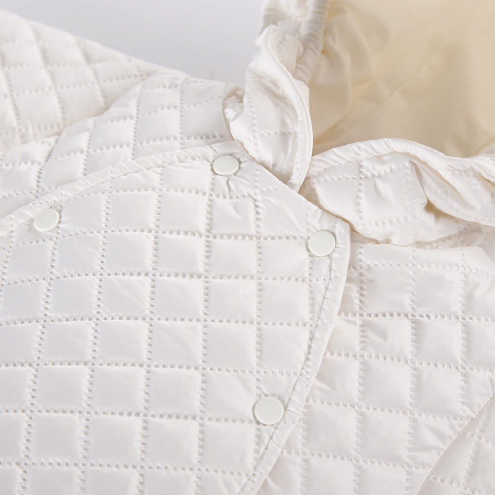 - Kapuce chrání hlavu před ochlazením přesným přilnutím k hlavě dítěte díky všitému gumovému pásku.