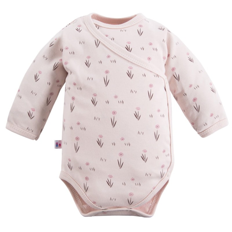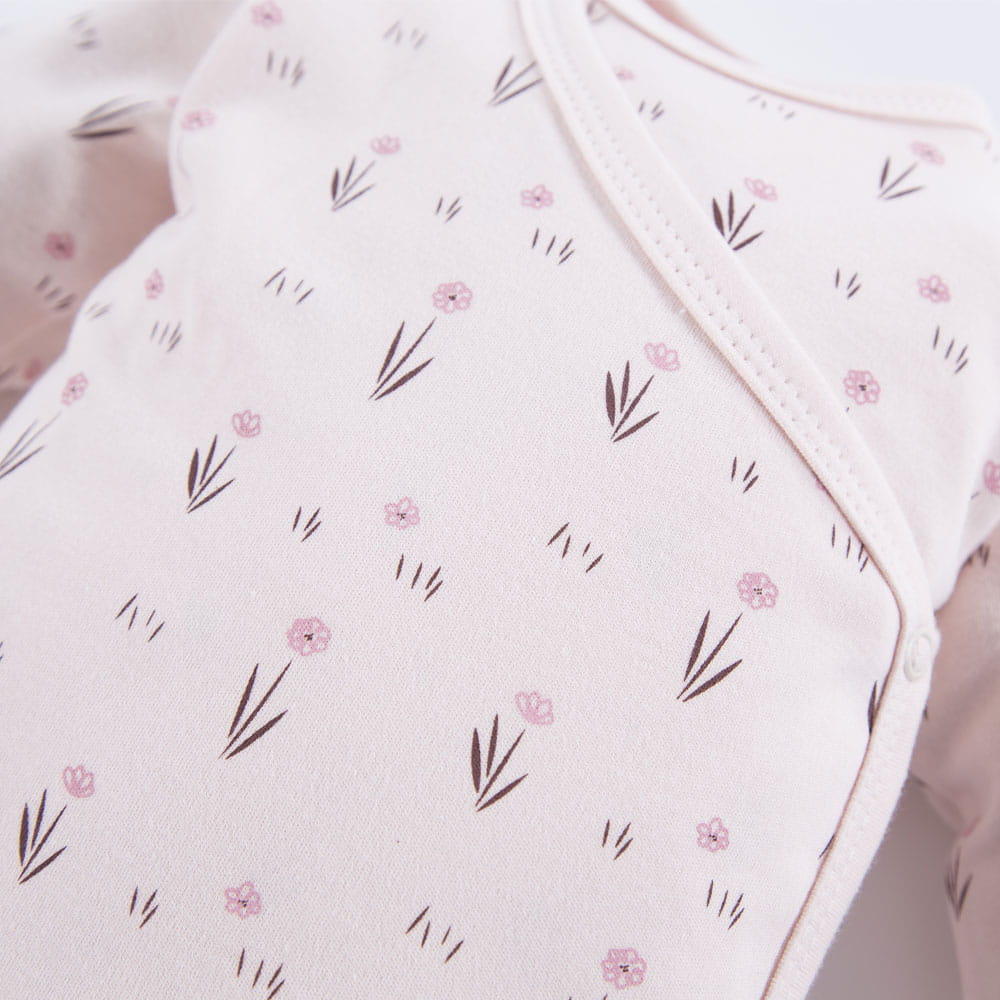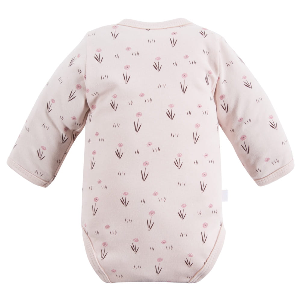 Kojenecké body s květinovým motivem v světle béžové barvě