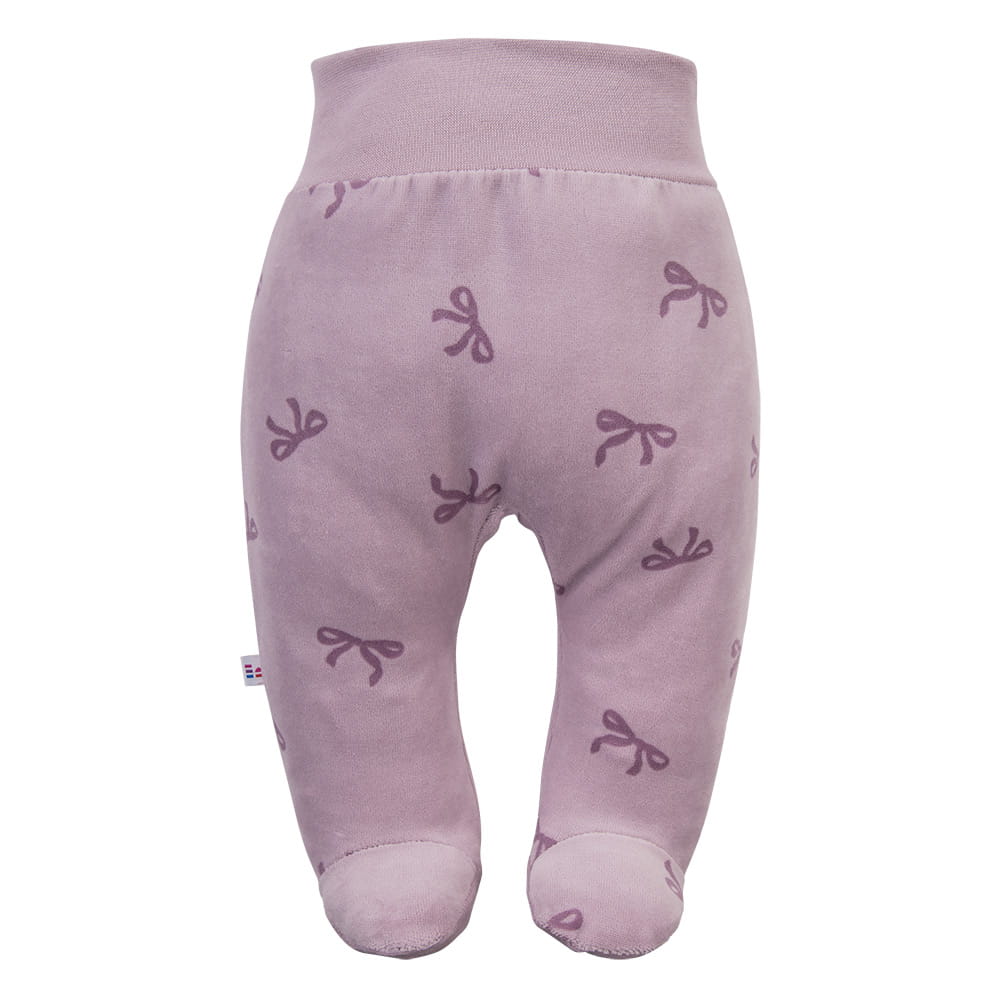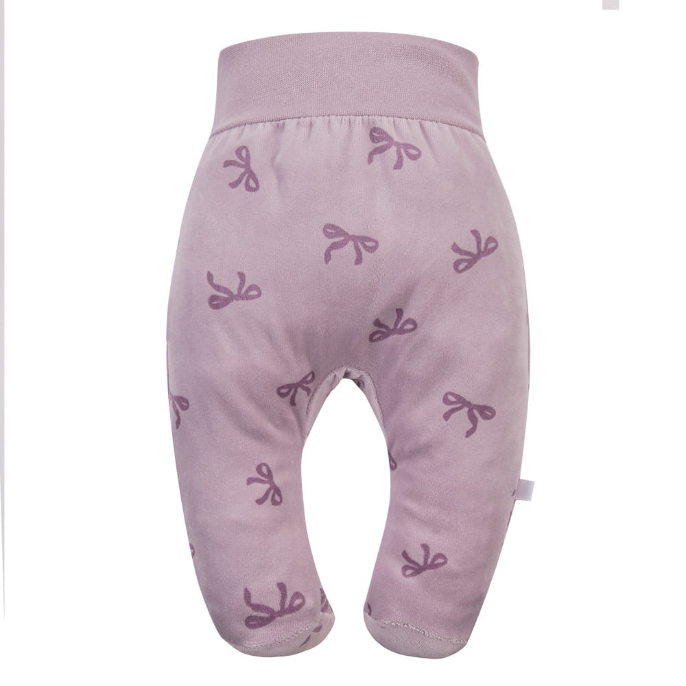 Vřesové kojenecké polodupačky s jemným motivem mašliček jsou pohodlným a praktickým oblečením pro miminka. Jsou vyrobeny z měkkého veluru, který zajišťuje komfort a teplo. Beztlakový pas se jemně přizpůsobí bříšku dítěte.