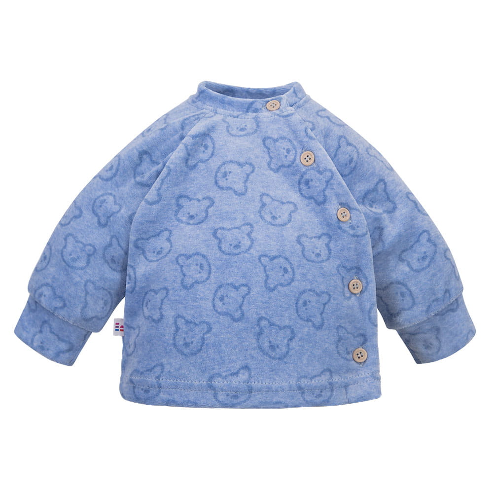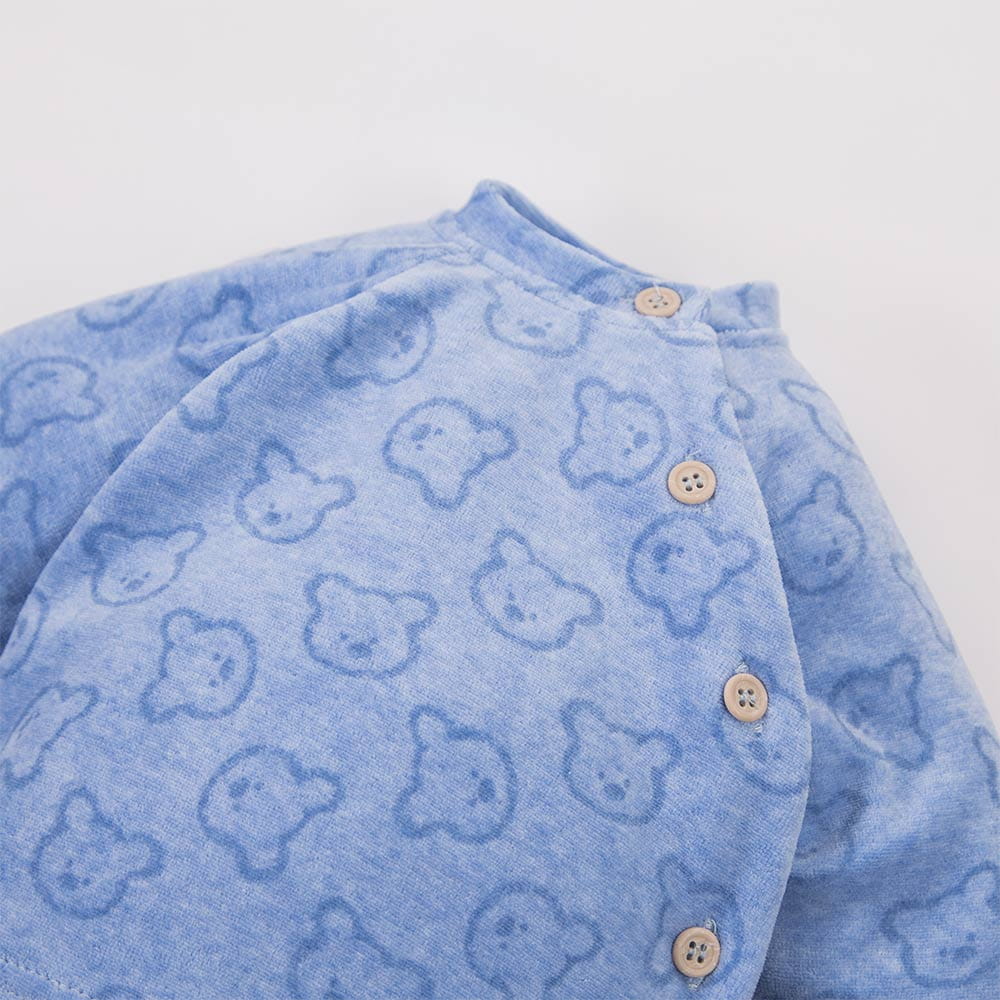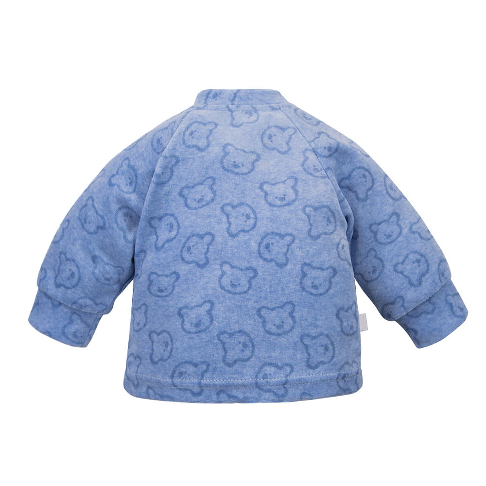 Kojenecký kabátek zapínaný na bok modrý s medvídky z veluru