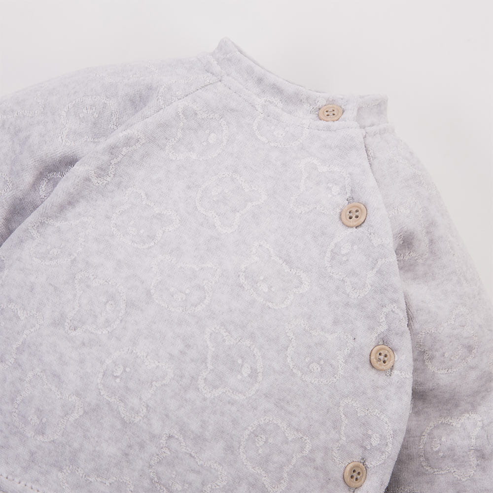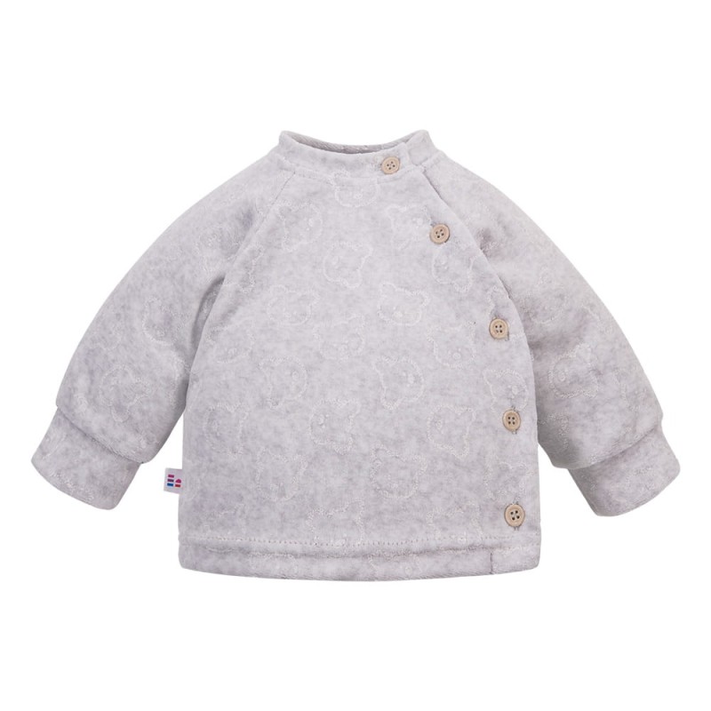 Kojenecký kabátek zapínaný na bok šedý s medvídky z veluru