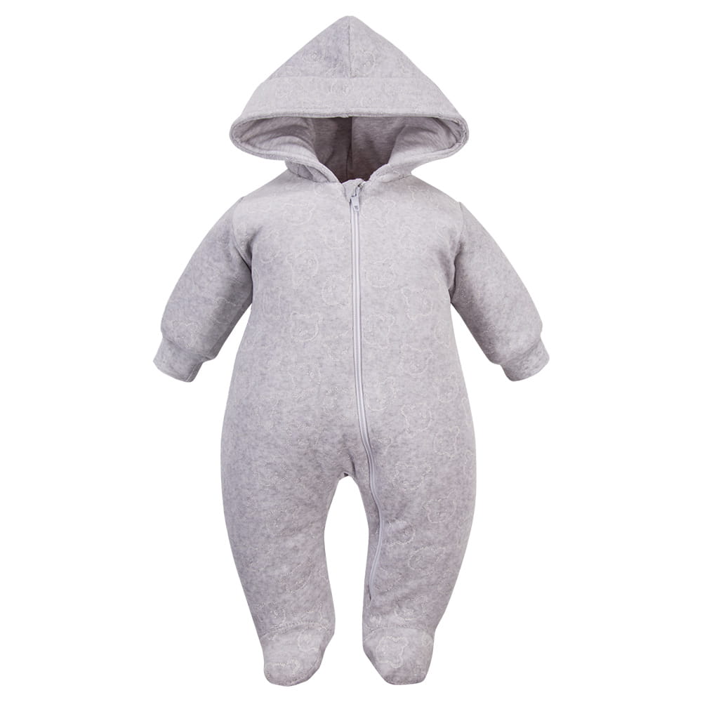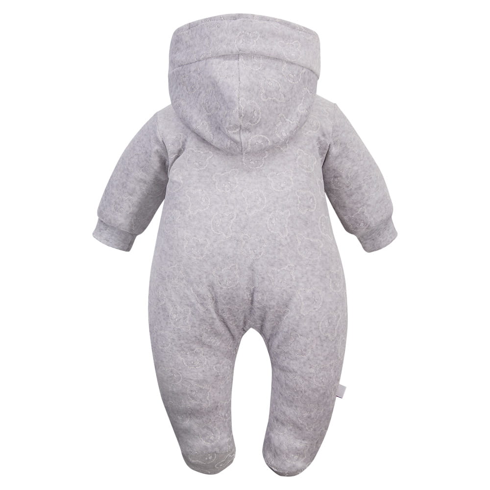 Kojenecký overal na zip s kapucí šedý s medvídky