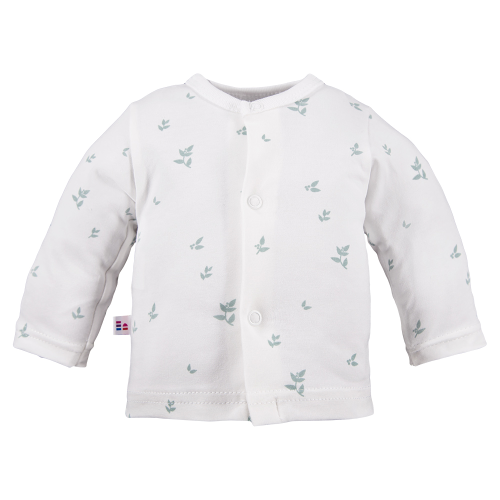 - Bílý kabátek s dlouhým rukávem s motivem lístků