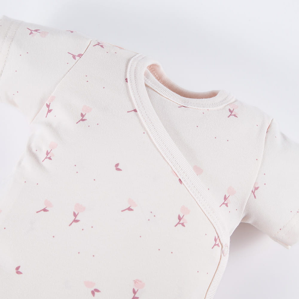 Dětské zavinovací body růžové 3ks s motivem květin – kolekce Petite
