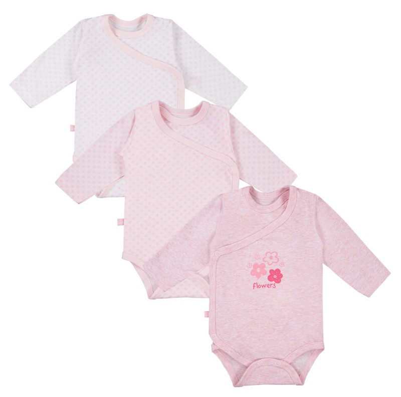 Multipak 3 ks Body zavinovací s dlouhým rukávem TINY bílé/růžové