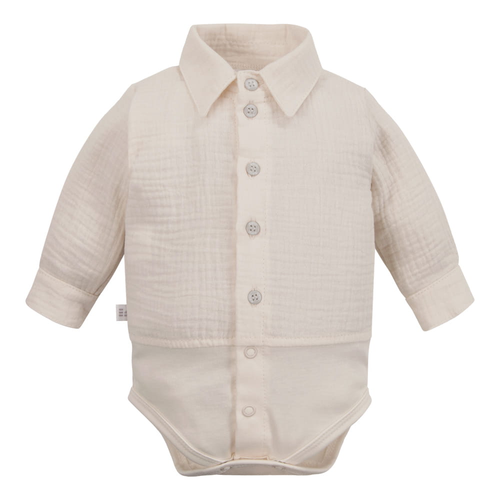 Mušelínové body košilového střihu s límečkem a knoflíky béžové – kolekce Ceremony