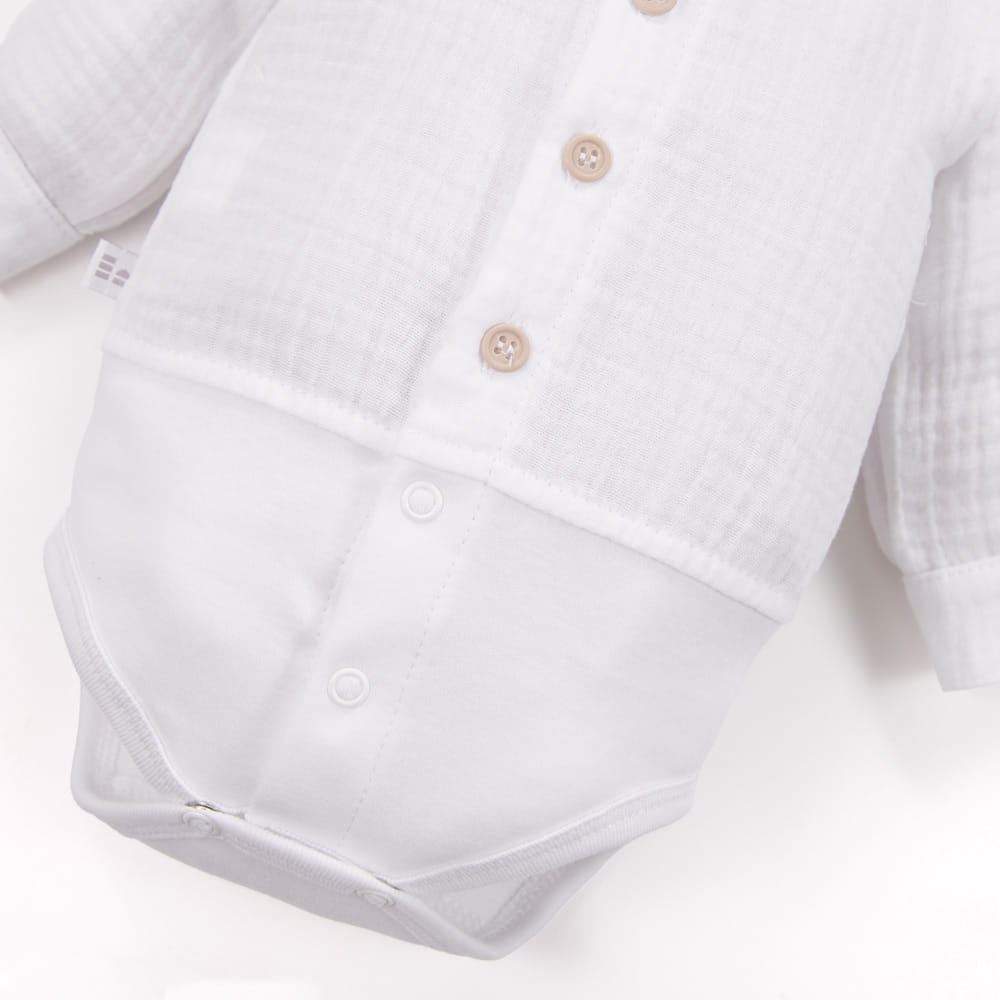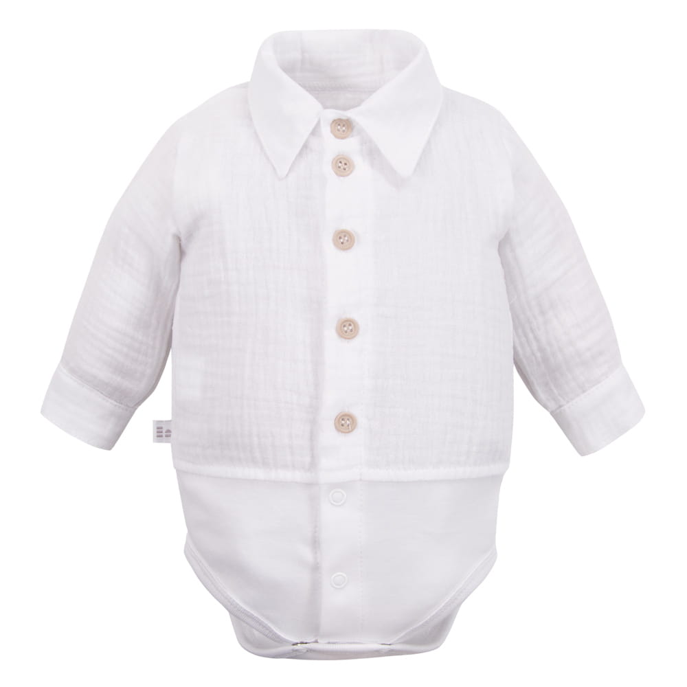 Bílé mušelínové body košilového střihu s límečkem a knoflíky – Kolekce Ceremony