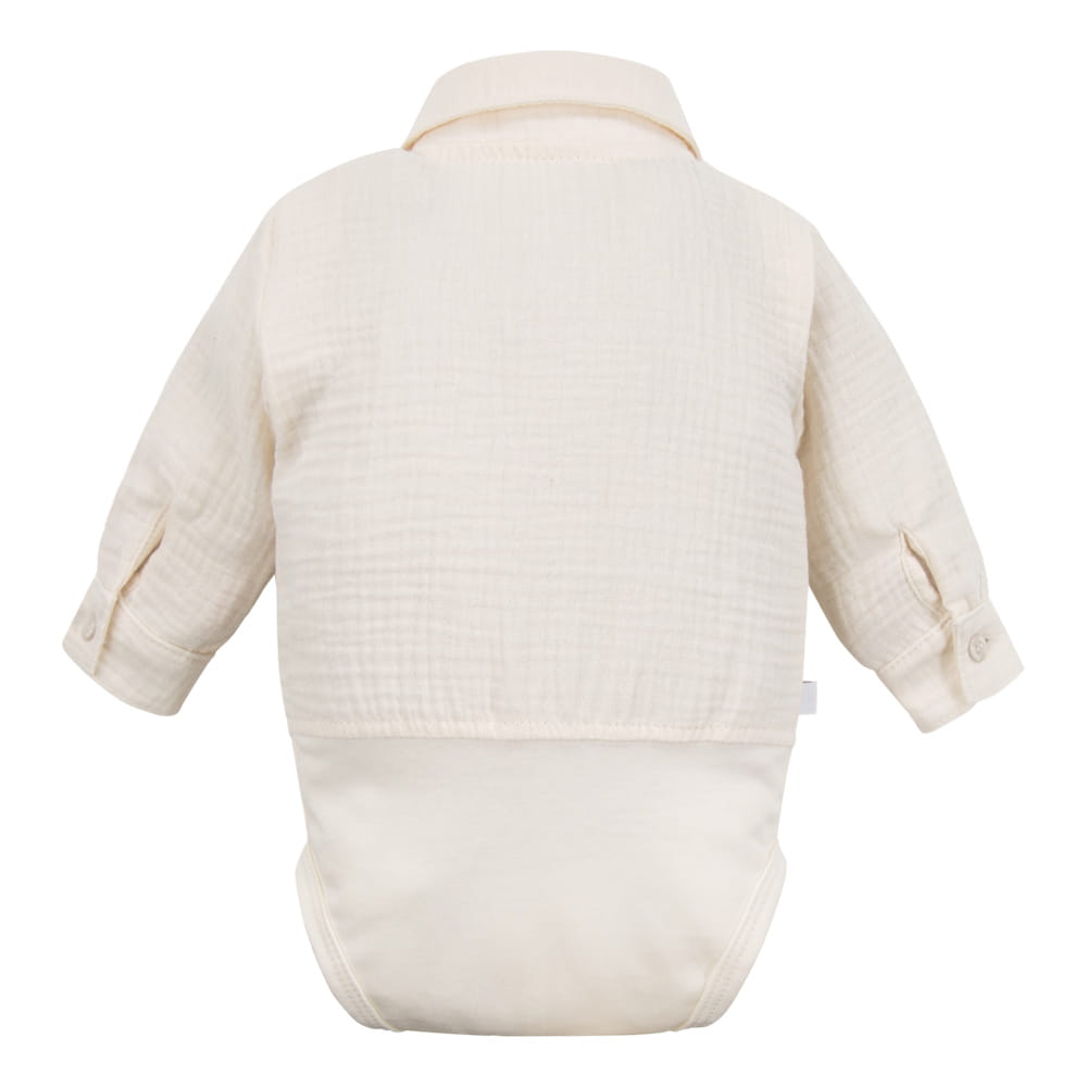Body košilového střihu z kolekce Ceremony je elegantní volbou pro slavnostní příležitosti, jako jsou křtiny, svatby nebo svaté přijímání. Kombinuje vzhled košile s pohodlím body.