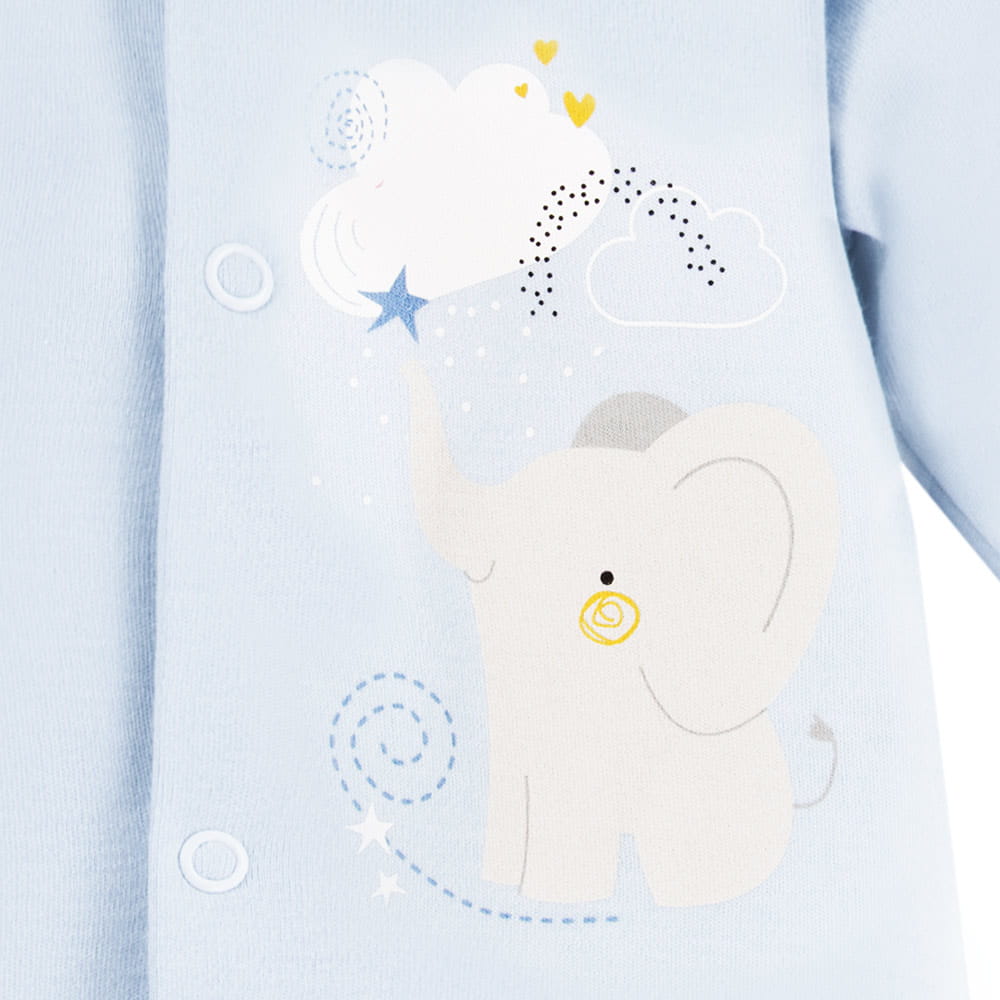 Dětské dupačky s nožičkami z kolekce Mellow jsou ušity z měkké a na dotek příjemné bavlněné pleteniny, která zajišťuje pohodlí a bezpečí pro citlivou dětskou pokožku. Na přední straně se nachází roztomilý motiv sloníka, který dodává oblečení jemný, dětský vzhled.