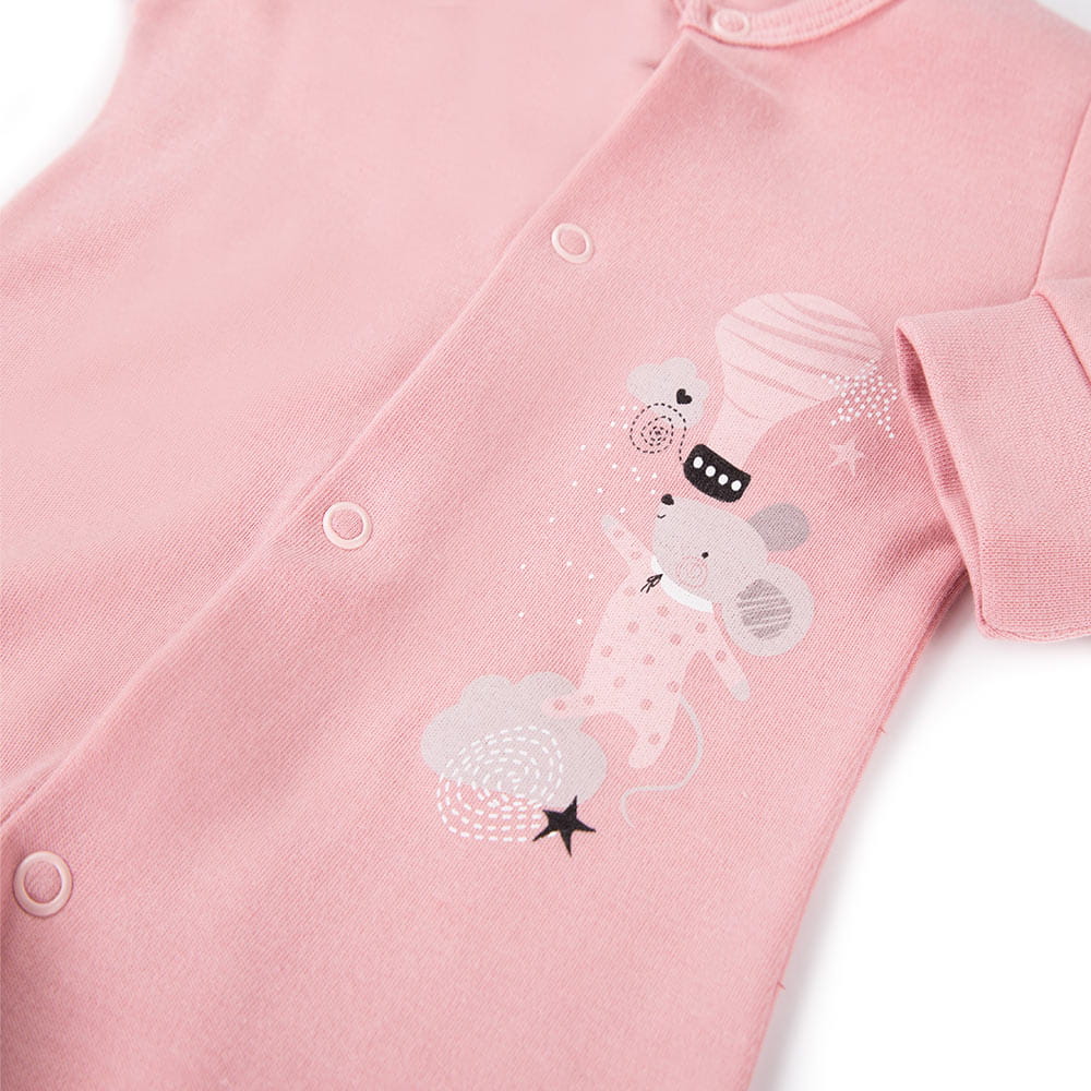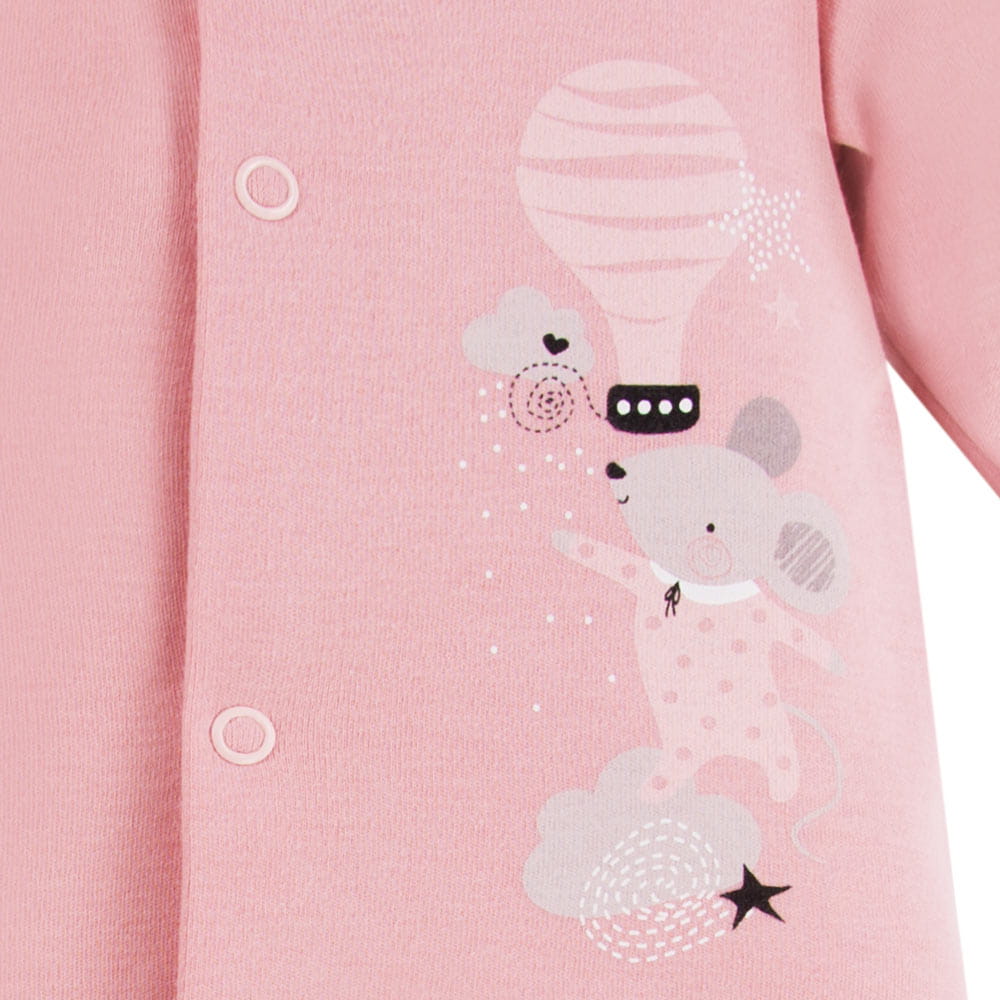 Dětské dupačky s nožičkami z kolekce Mellow jsou ušity z měkké a na dotek příjemné bavlněné pleteniny, která zajišťuje pohodlí a bezpečí pro citlivou dětskou pokožku. Na přední straně se nachází roztomilý motiv myšky, který dodává oblečení jemný, dětský vzhled.