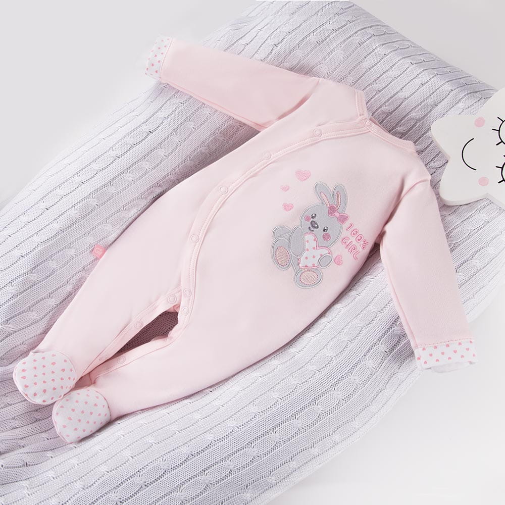 Růžový dětský overal s králíčkem – Kolekce Newborn