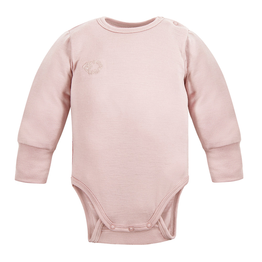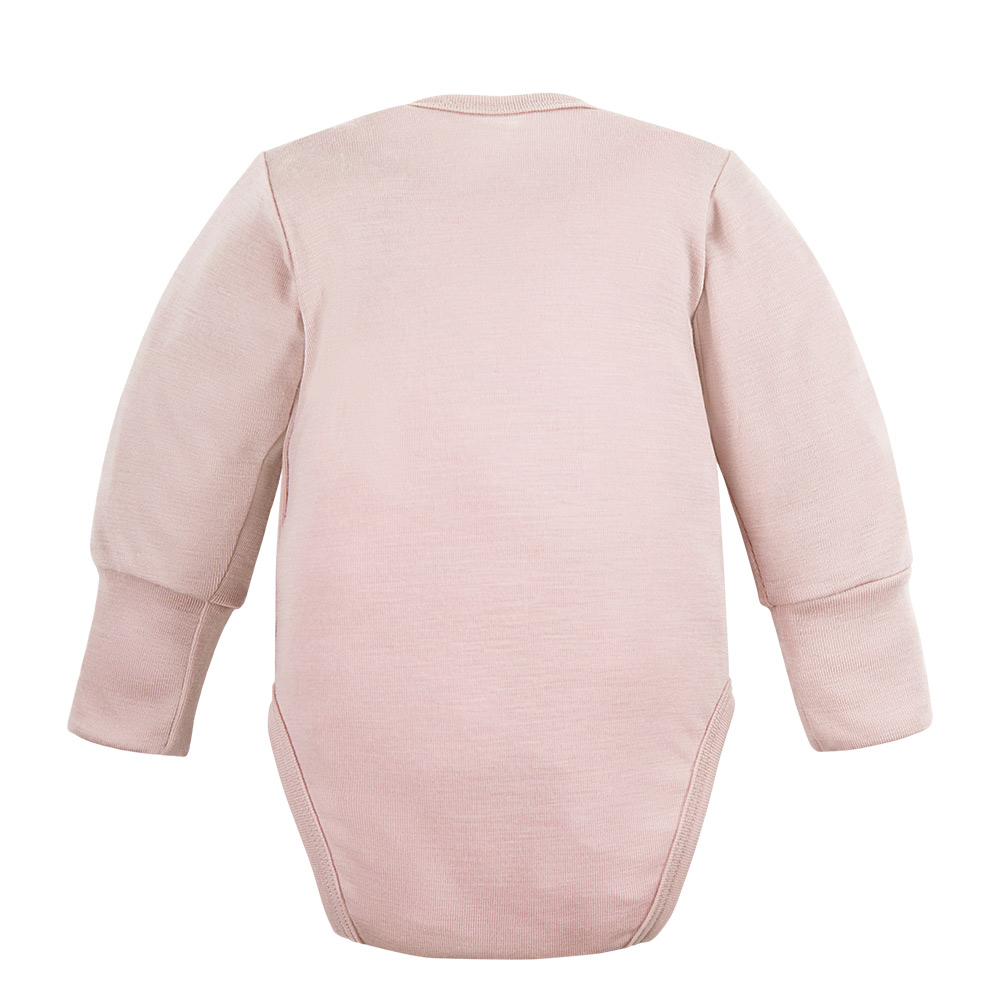 Růžové zavinovací body z merino vlny – kolekce Merino