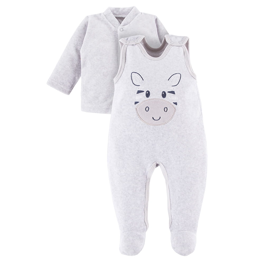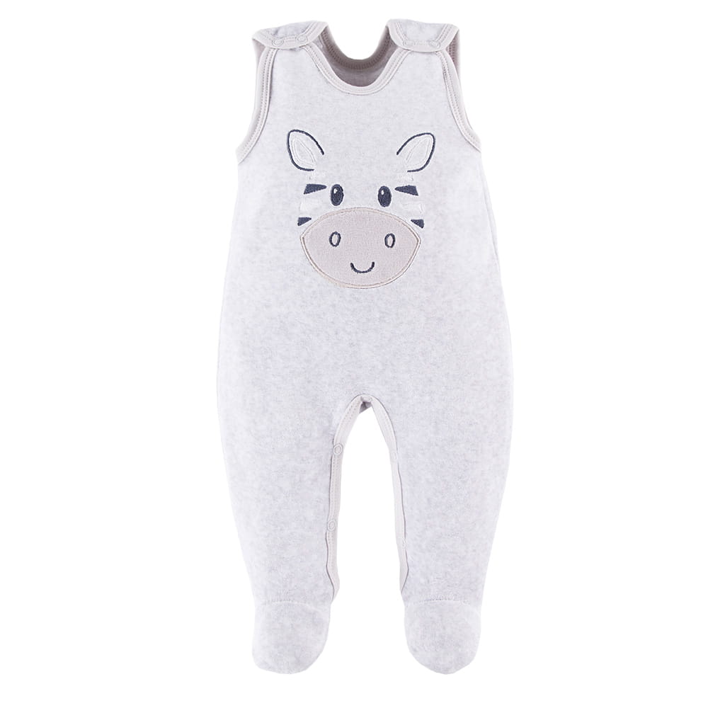 Šedá kojenecká velurová souprava s výšivkou zebry